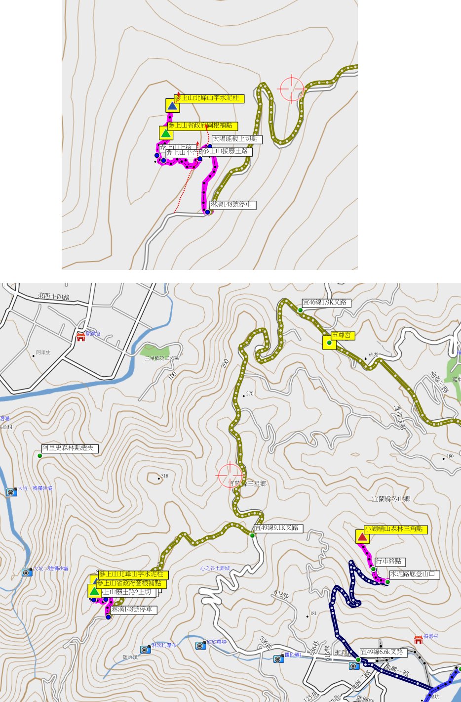 3、參上山:位於宜蘭縣三星鄉,標高435公尺,台灣省政府圖根補點;座標317983 2726784。