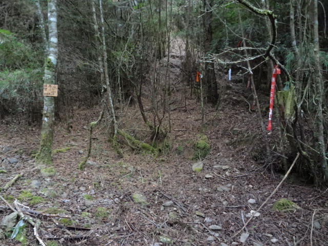 12:41海拔2497公尺~叉路《杉林營地–續行為腰繞路徑往境界山–右邊往遇柯藝木板往捷徑境界山第一登山口》√取右邊步行