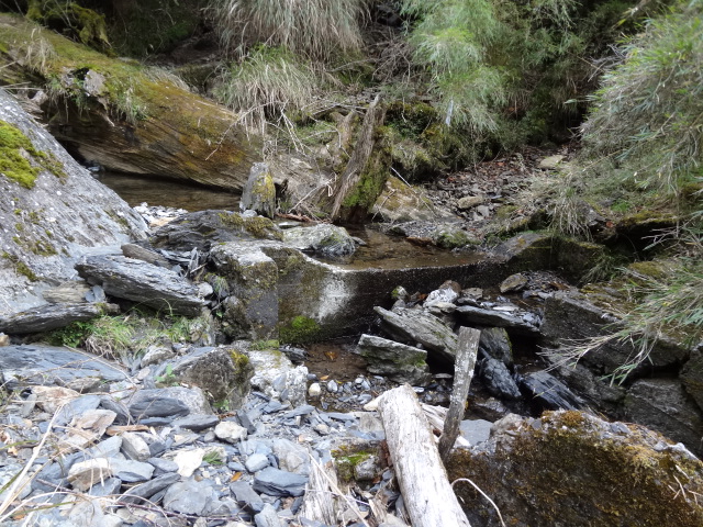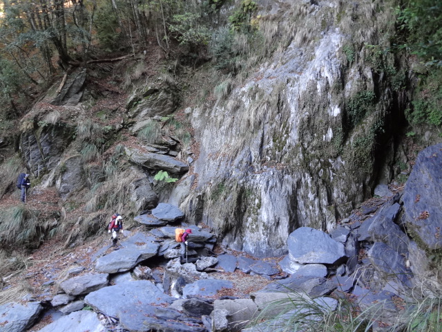 06:45海拔2215公尺乾溪河床√遇倒樹低頭過後約7公尺往左邊林中陡上步行