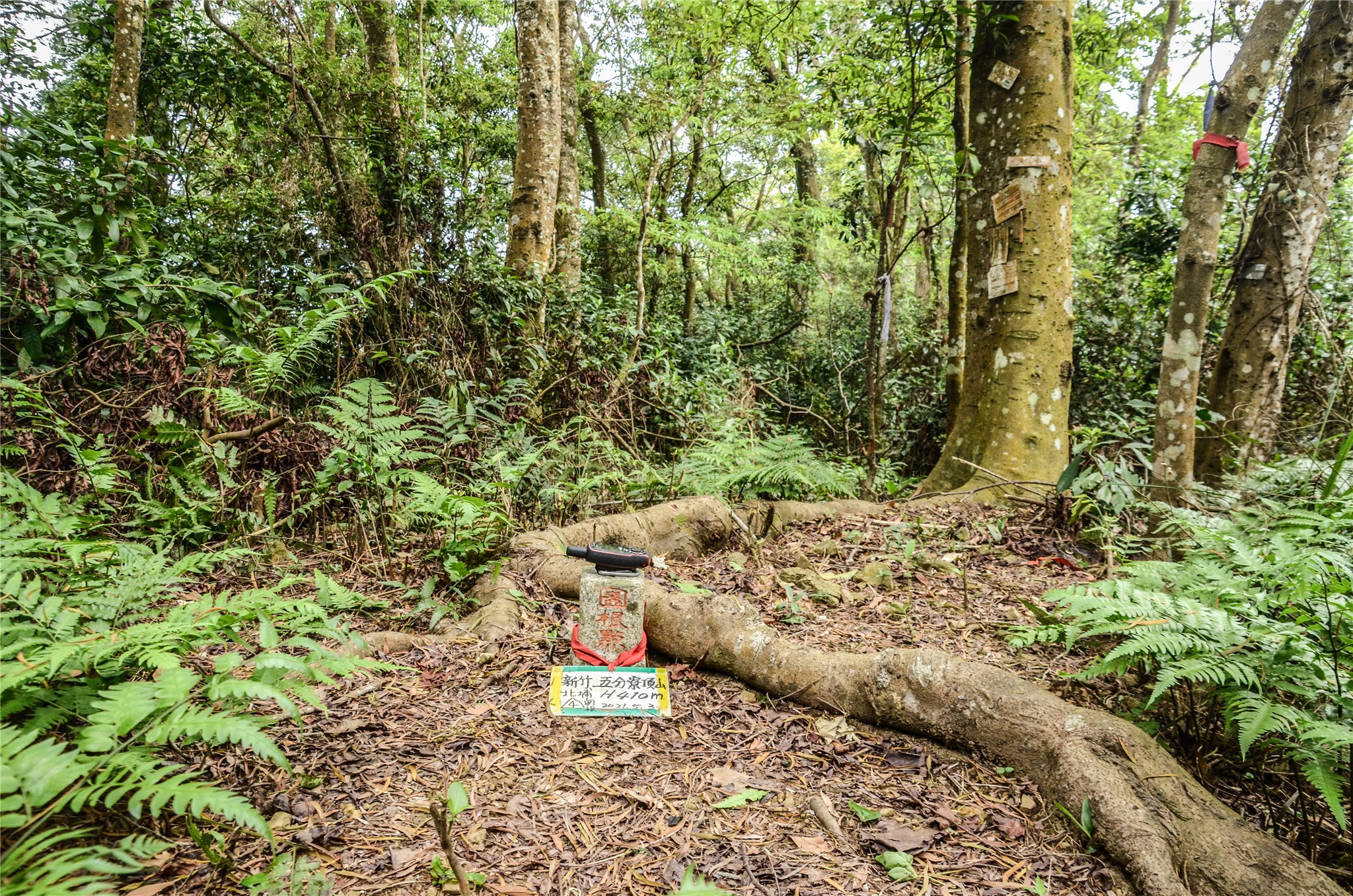 五分寮頂山:位於新竹縣北埔鄉,標高410公尺,山頂立有一顆冠字野(34)的土地調查局圖根點,座標255701 2729208。