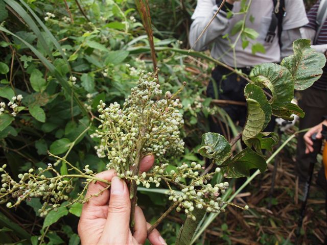 約於9:00開爬,林教授先行開路,我們則跟隨著林教官,沿途聽林教官解說各種可食植物,包括:腎蕨、台灣沙蘿、觀音座蓮、山棕、菇婆芋、車前草、月桃、野牡丹、山鹽菁(天公鹽)、火炭母、咸豐草、山蕉、茅草、山蘇等等,以下分別介紹幾種植物。