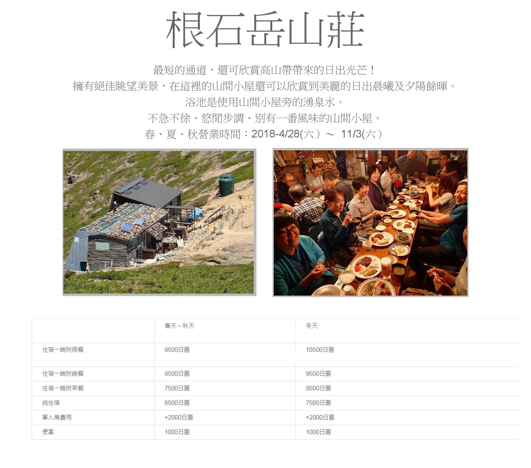 位於櫻平登山口的夏澤礦泉、硫黃岳稜線上的硫黃岳山莊、鄰近根石岳的根石岳山莊。
