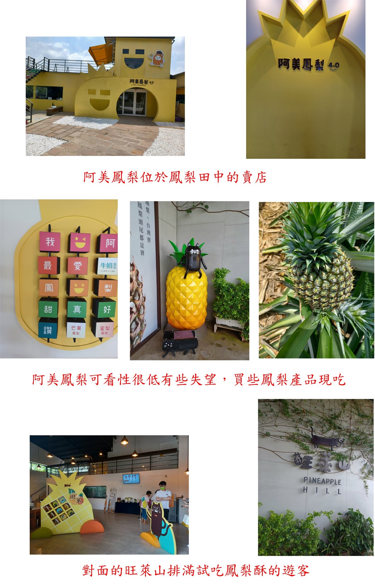 位於鳳梨田中的賣店,可看性很低有些失望,買些鳳梨產品現吃,對面的旺萊山排滿試吃鳳梨酥的遊客。