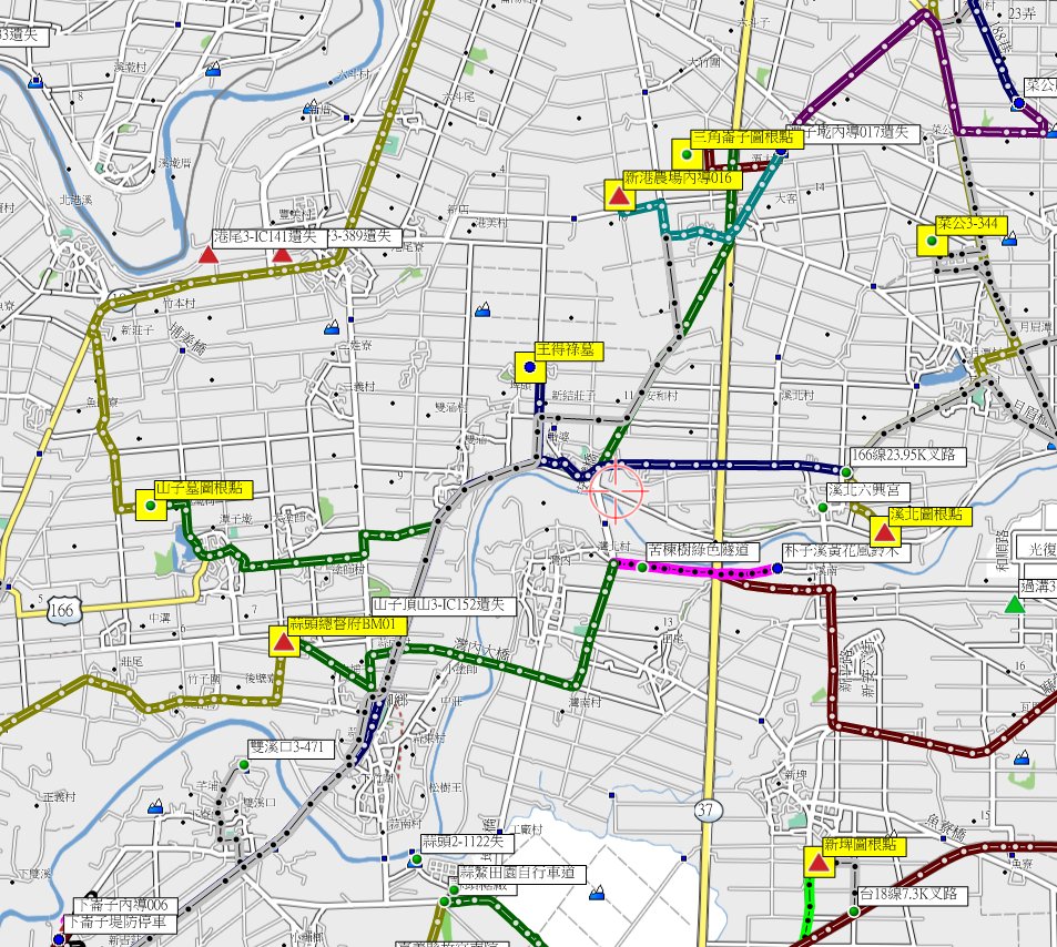 162線15.3K叉路左轉大埔美工業區道路走約0.5K,左轉上坡路走210公尺舊時崗哨,山友訊息得知基地已撤果真崗哨敞開;長驅直入續走260公尺路底前,上方為為軍方的大埔美電台,路底竟然停有許多軍車;有軍人出來關切,經詢問基地已撤,猜測可能是在演習等臨時任務才有軍人,距離基石只剩50餘公尺,在電台右方的高點,無法查看此點是否存在?