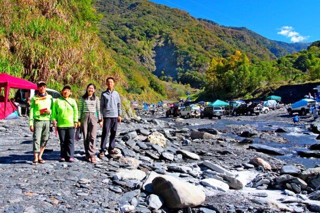 13:30依依不捨離開,臨時決定到春陽部落紮營,因此走台14線往廬山方向,在84.6K右轉之字形道路下到山谷,過德魯灣橋後,記起第一次到此是2006/5/20全家來爬武令山;春陽部落有好幾個溫泉營地,看到前面的都已是滿滿帳棚,因此我們往裡面開,來到「部落尋奇」,一問之下,還有空位,就決定在此露營兼泡湯。
