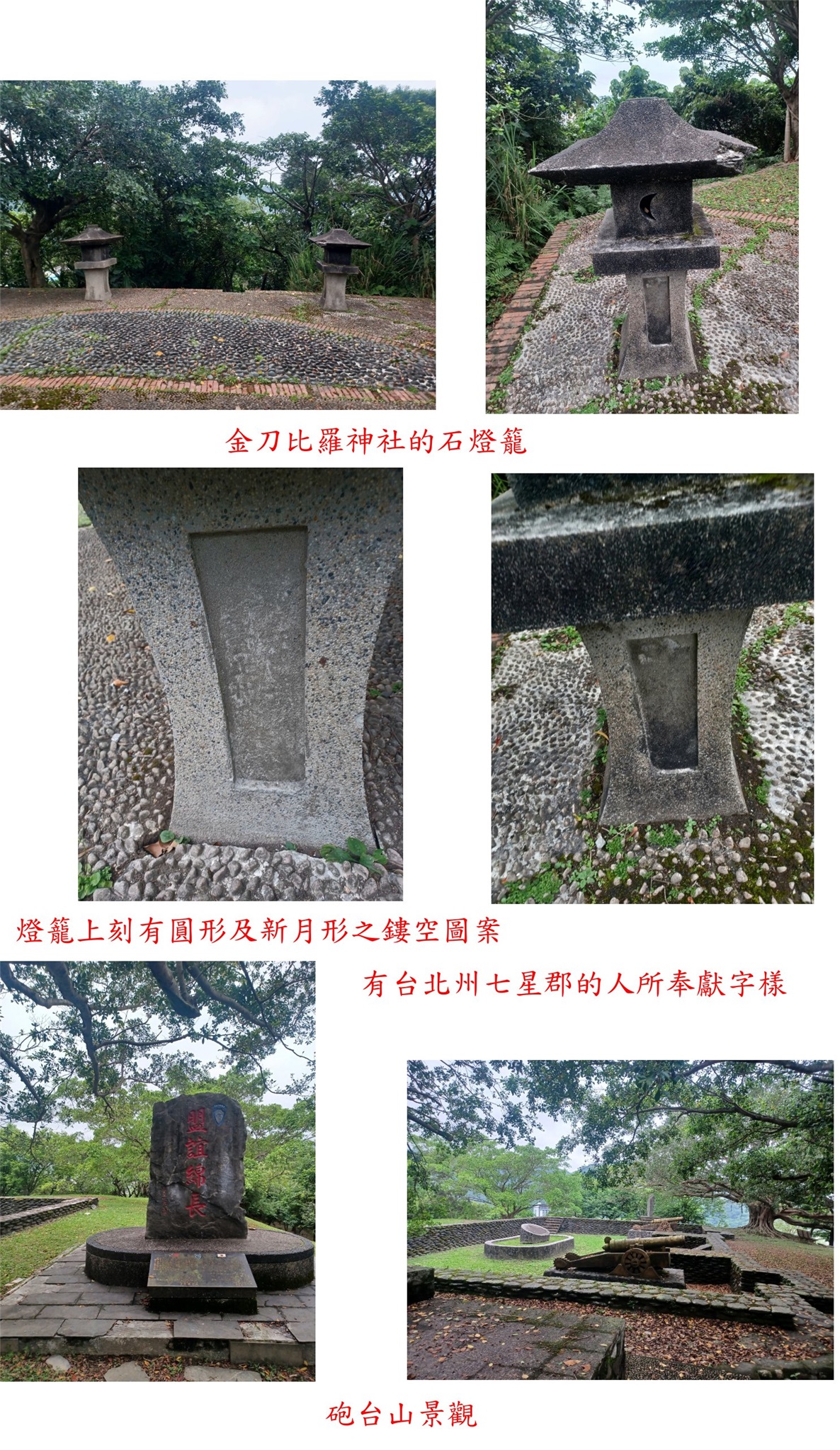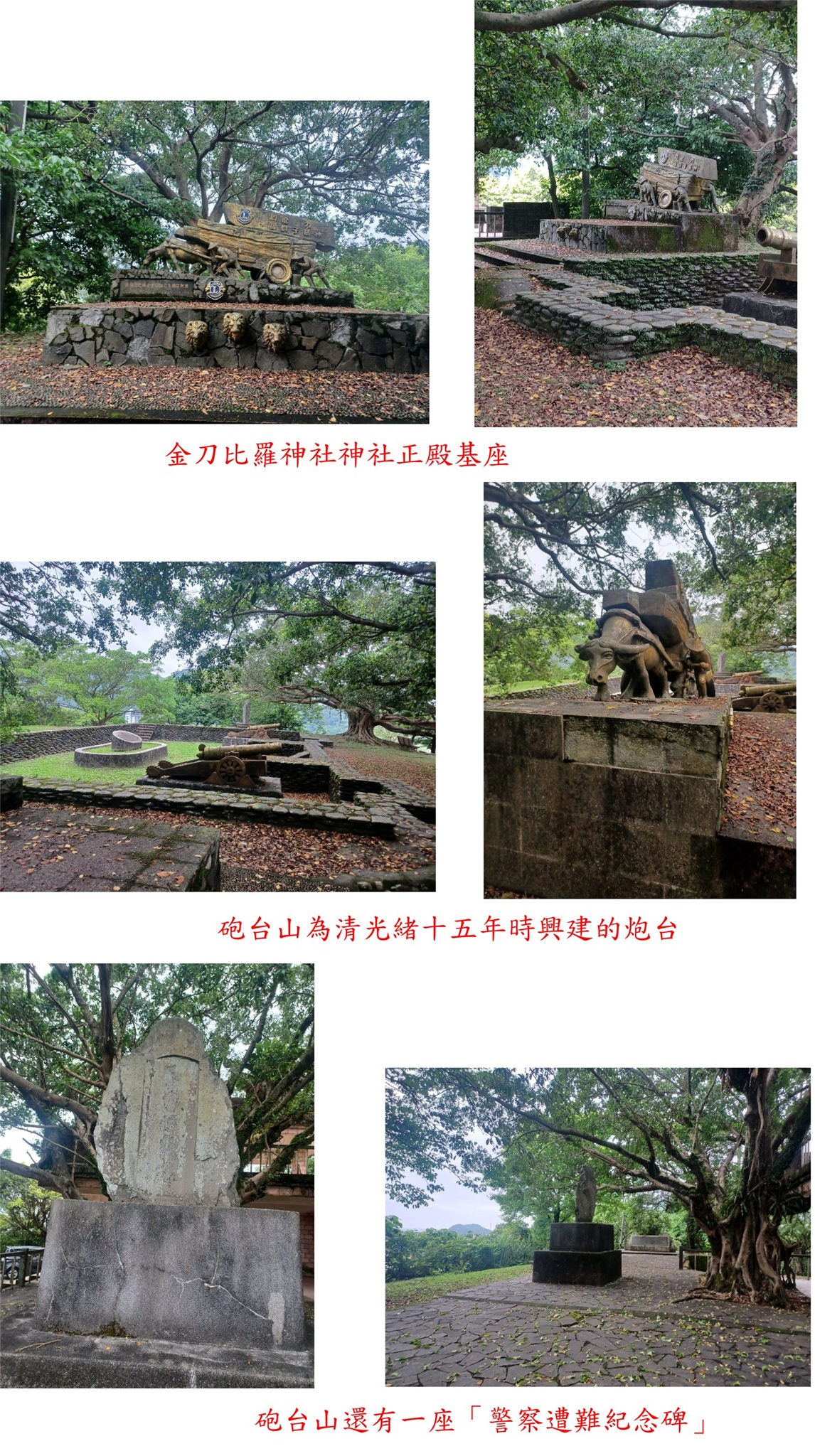 2、金刀比羅神社-砲台山:社名標、參道、石燈籠及神社正殿基座;另有警察遭難紀念碑