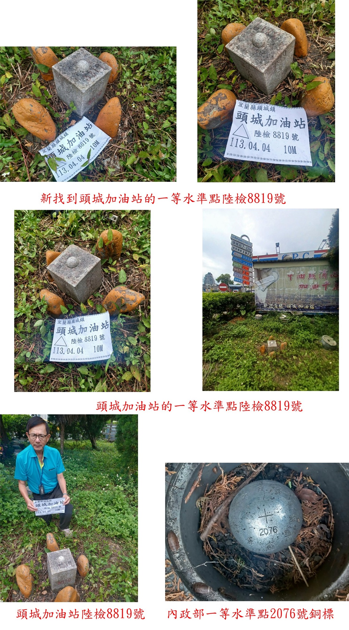 位於開蘭路與青雲路三段交叉路口的安全島的草埔中,即可見到頭城加油站陸檢8819號,聯勤測量隊埋設於民國87年9月,緊臨中油頭城加油站,旁還有顆內政部一等水準點2076號銅標,安全島中有座扶輪社設立的標示牌;此點係台東阿倫告知,4/4剛好要回羅東就順便繞過去拍照。