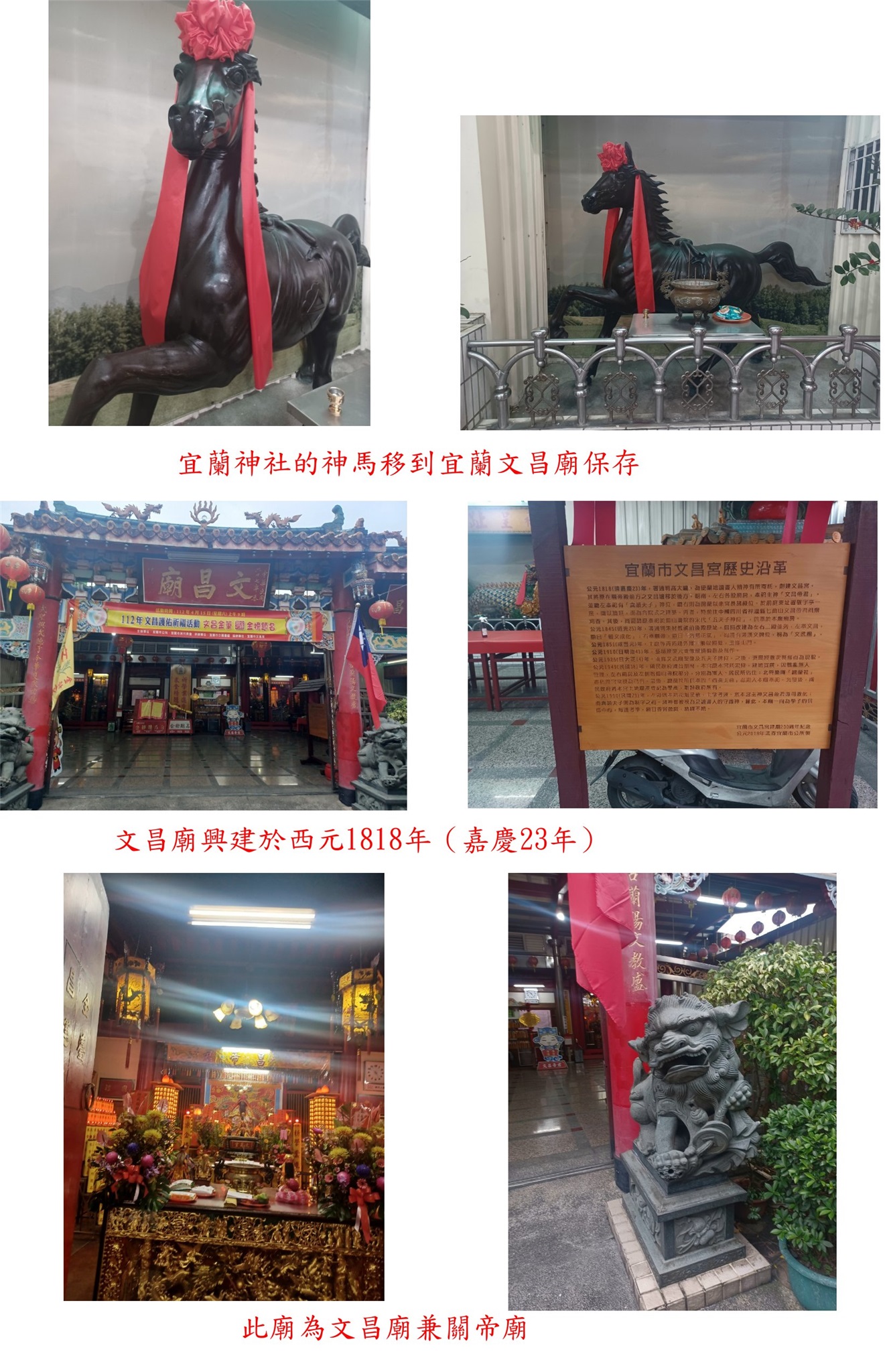 上回去員山的忠烈祠尋訪宜蘭神社,後得知神社的神馬移到宜蘭文昌廟保存,4/4要回羅東就順道繞到文昌廟拍照。