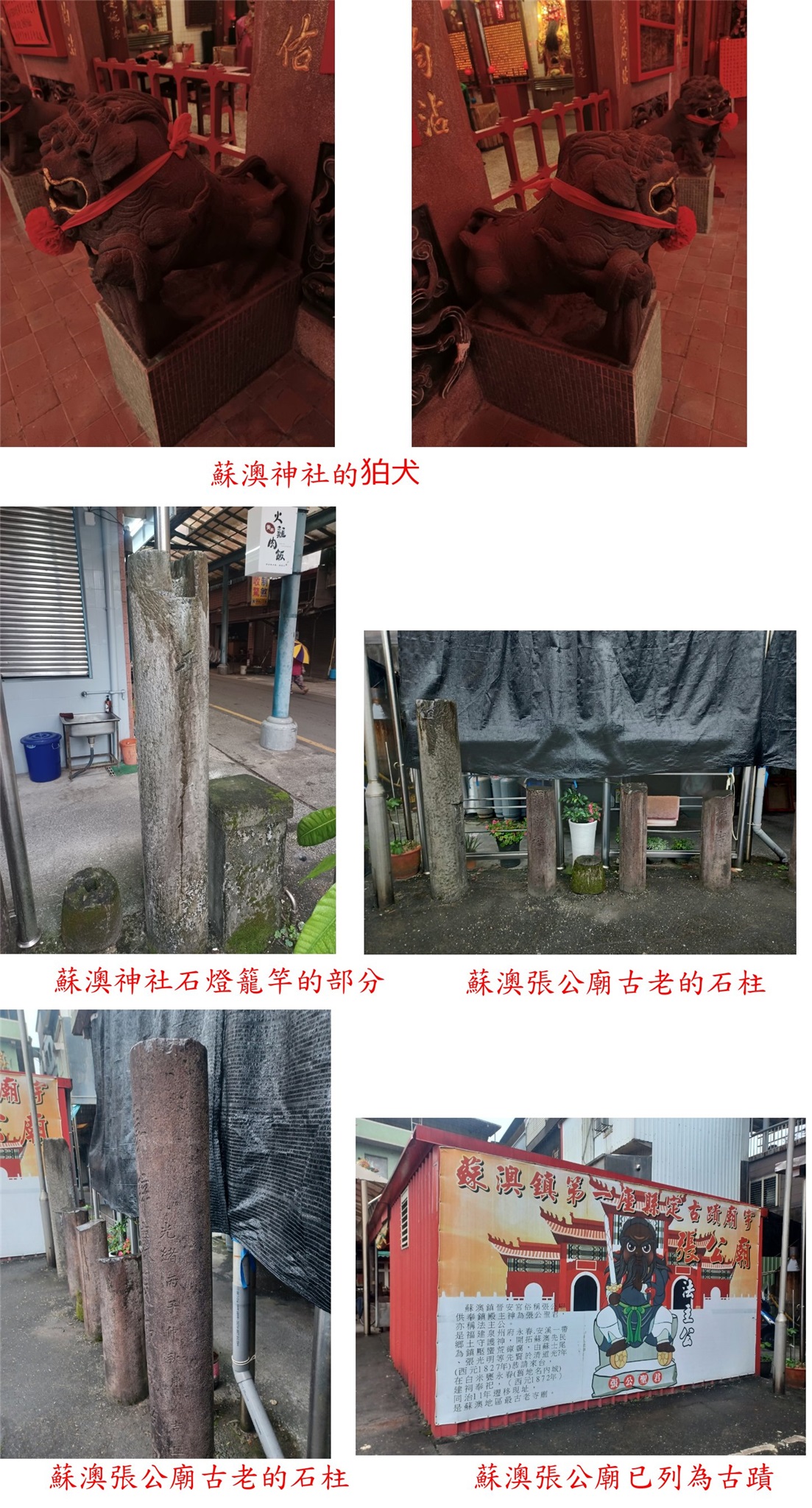 4、蘇澳神社-蘇澳國中:社號標(繼往開來)與石燈籠基座;晉安宮:狛犬、石燈籠竿部分