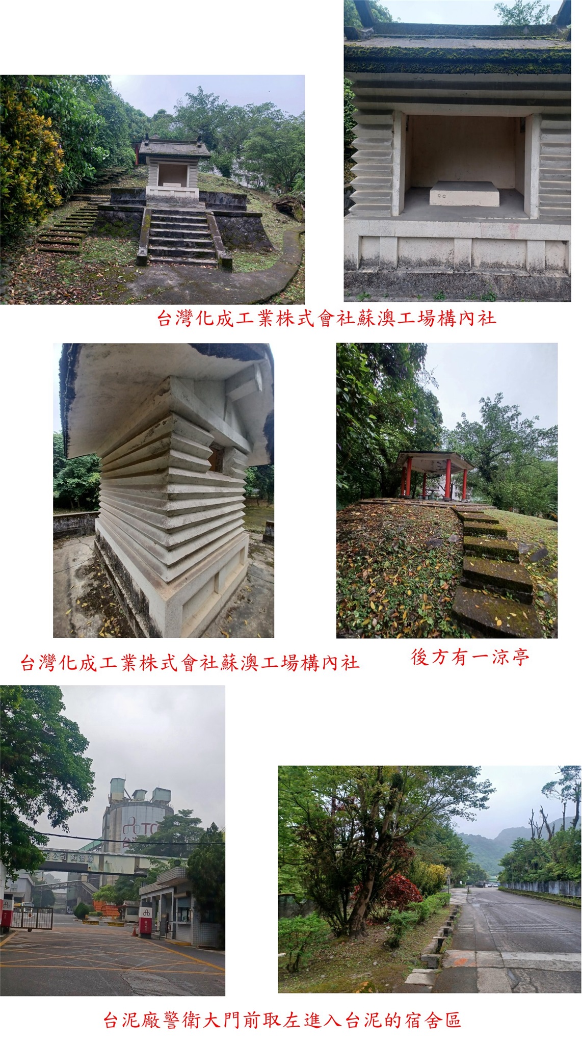 3、台灣化成工業株式會社蘇澳工場構內社-台灣水泥蘇澳廠:參道.玉垣.本殿石垣(基座).校倉造本殿。