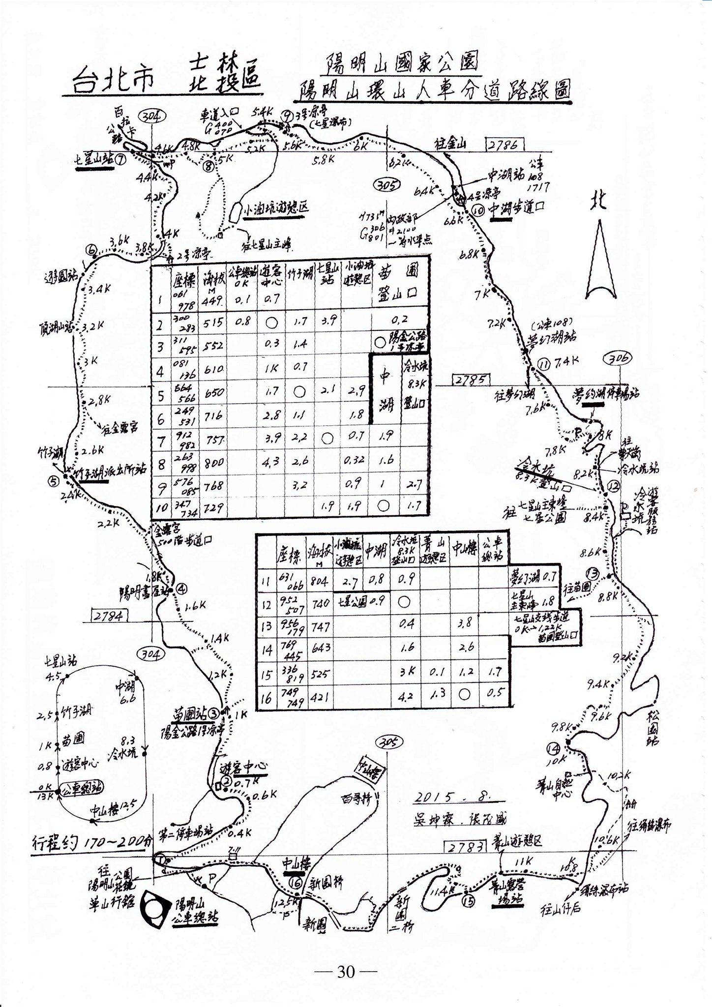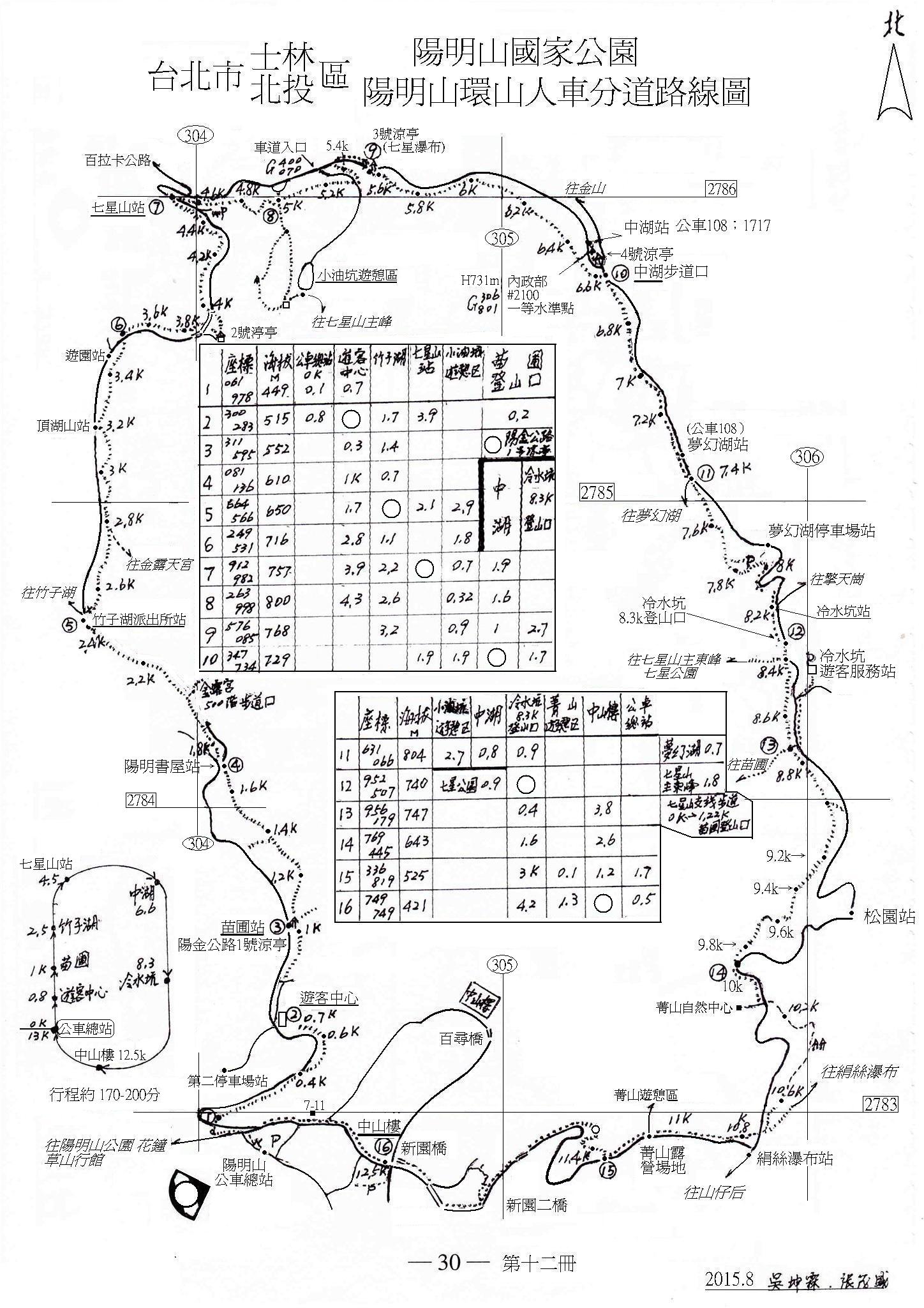 (十二030) 陽明山國家公園、陽明山環山人車分道路線圖