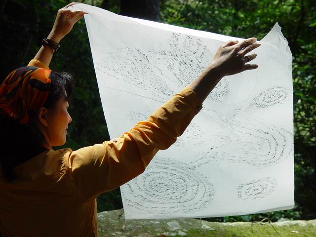 11:50 拓好印,測量過,準備離開岩雕,將外圈一片石塊帶回去分析。時間比預計多了三個鐘頭,和阿吉討論後,決定放棄來回要八個鐘頭的編號第二塊岩雕「祖布里里」。
