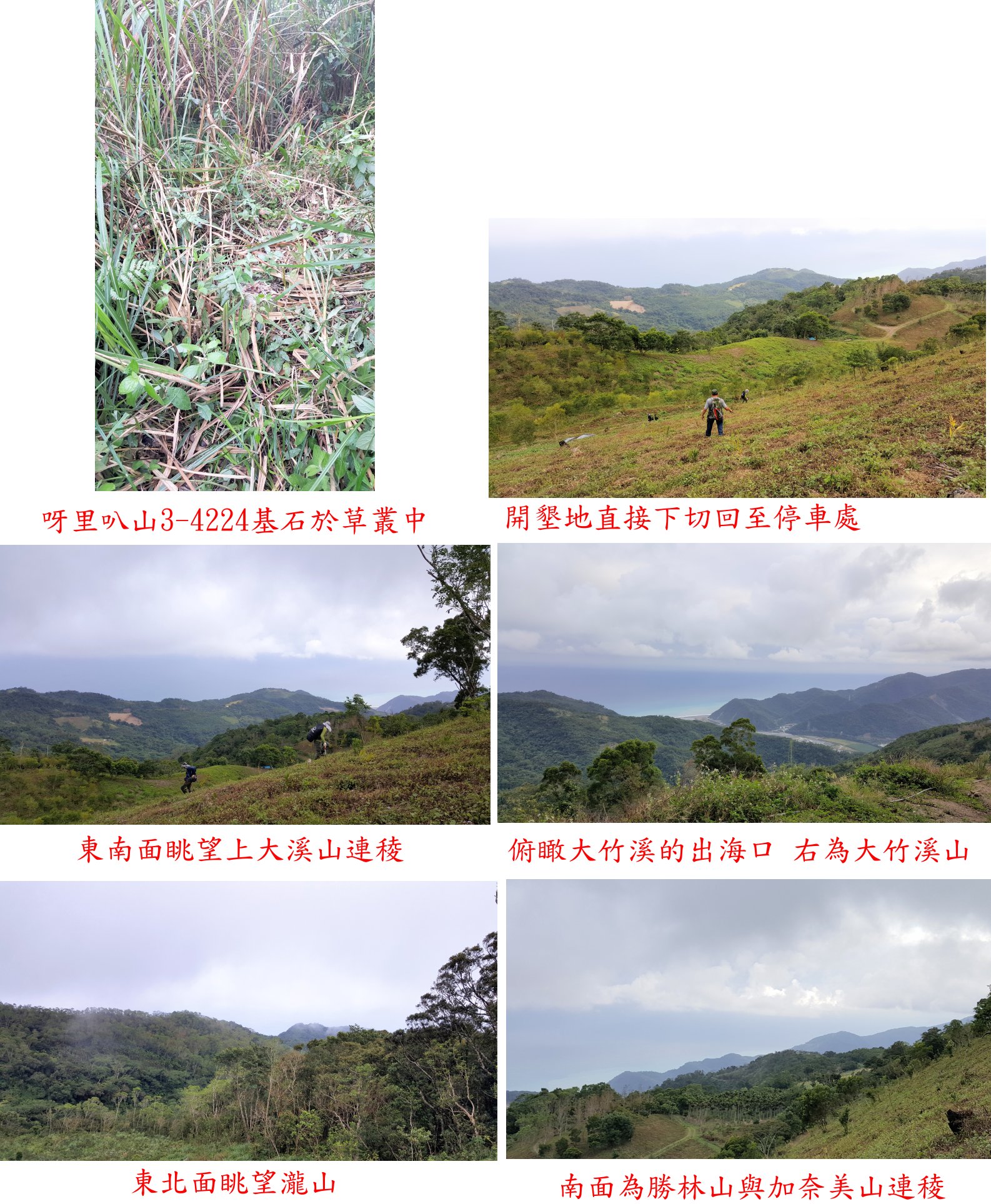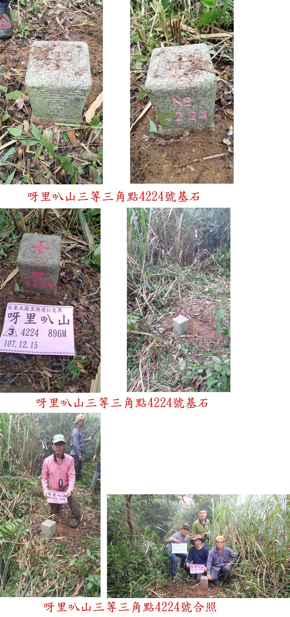 4、呀里叭山:位於台東太麻里與達仁交界處,標高896尺,三等三角點4224號基石;座標2416172489229。