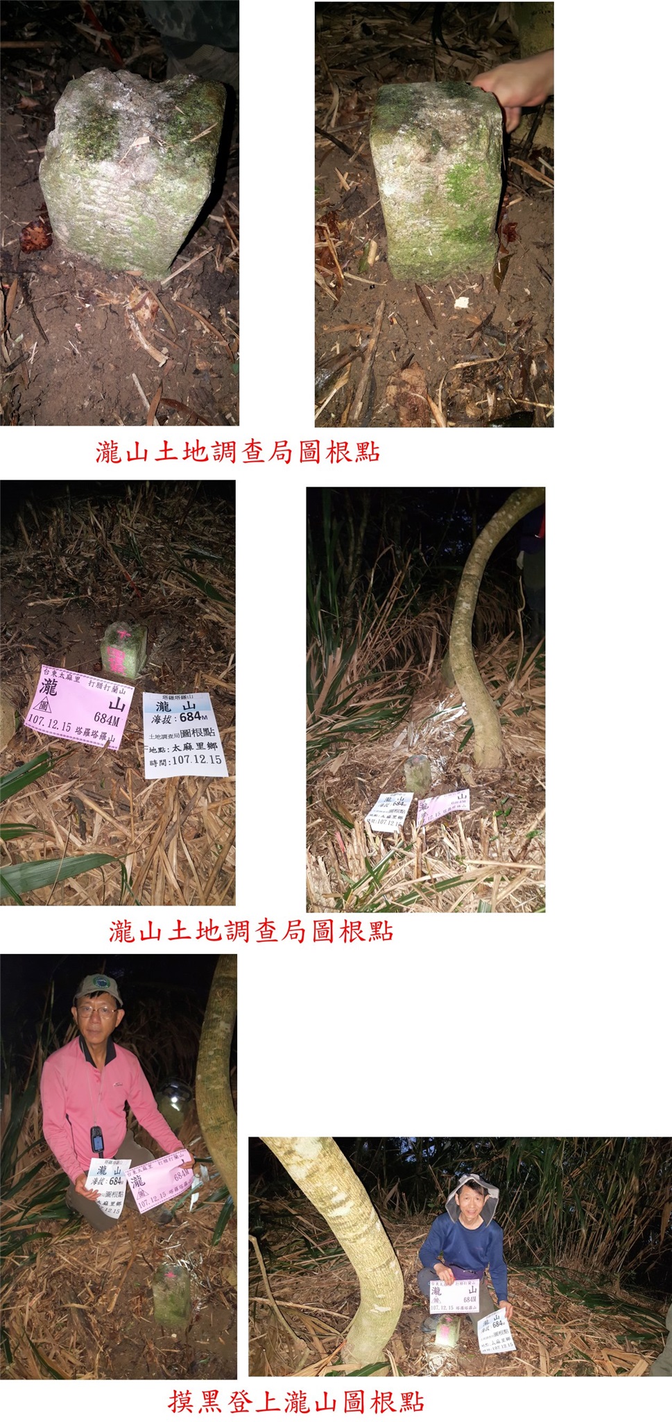 5、瀧山:又稱塔羅塔羅山或打腊打蘭山,位於台東縣太麻里鄉,標高684公尺,土地調查局圖根點;座標243500 2490129。