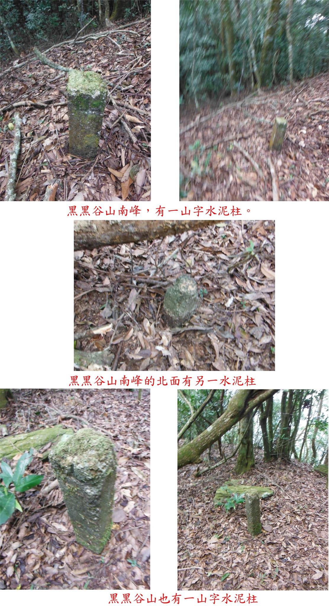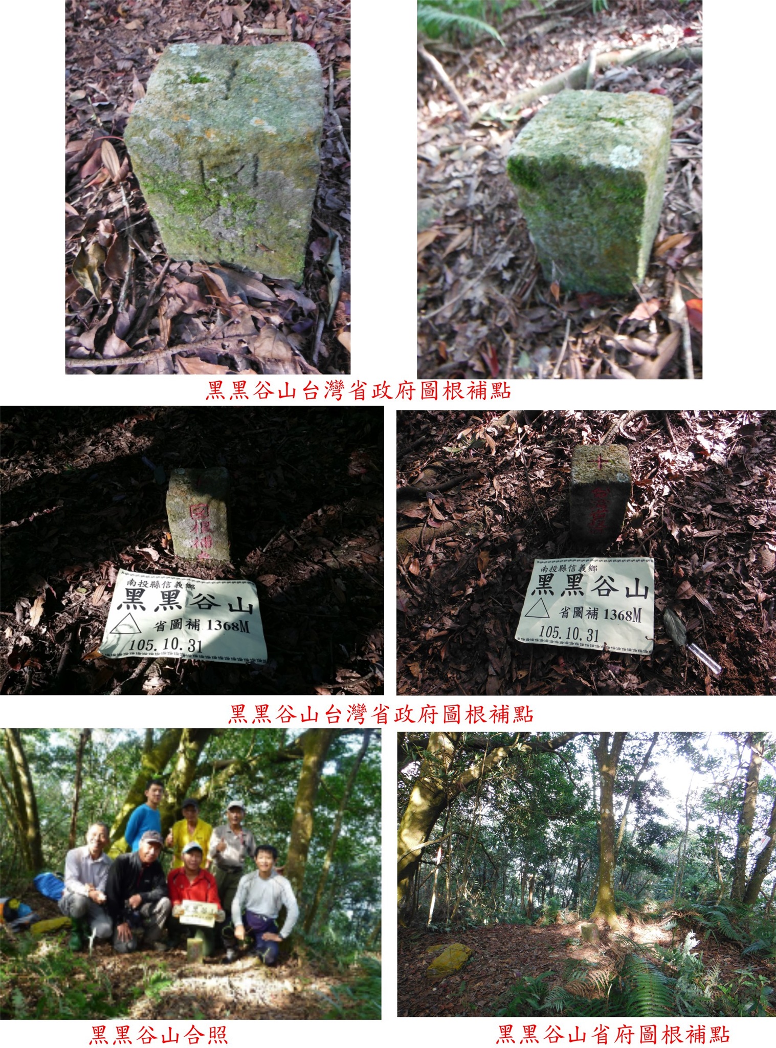 4、黑黑谷山:位於南投縣信義鄉,標高1368公尺,台灣省政府圖根補點;座標247199 2629980。