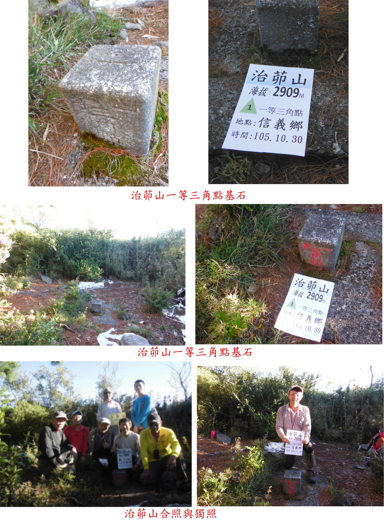 2、治茆山:位於南投縣信義鄉,標高2909公尺,一等三角點基石;座標247246 2626964。