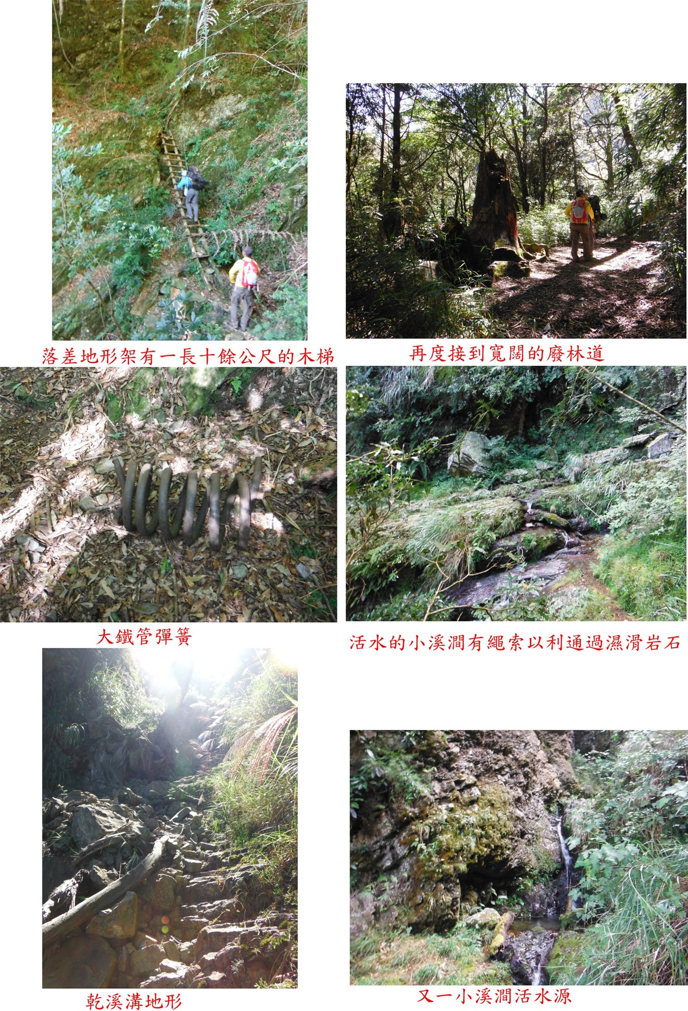 13:49前為斷稜陡降至溪谷,發現下錯稜線,應於13:05時取右支稜下;取右橫切過小溪溝後往上爬升。