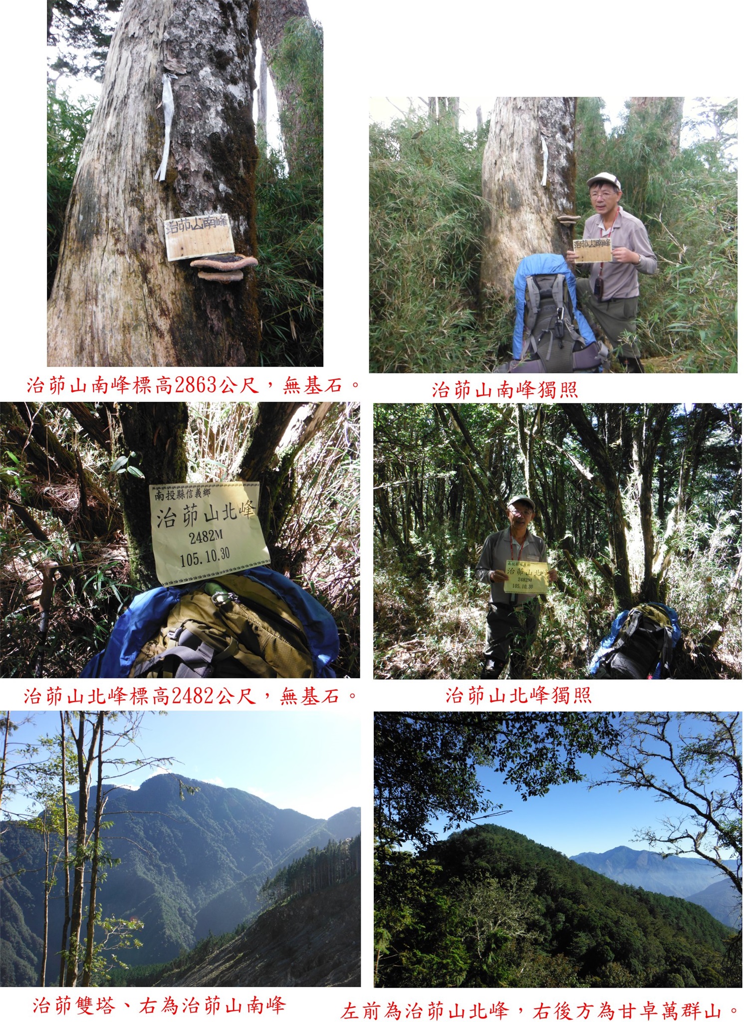 1、治茆山南峰:位於南投縣信義鄉,標高2863公尺,無基石;座標246503 2626158。