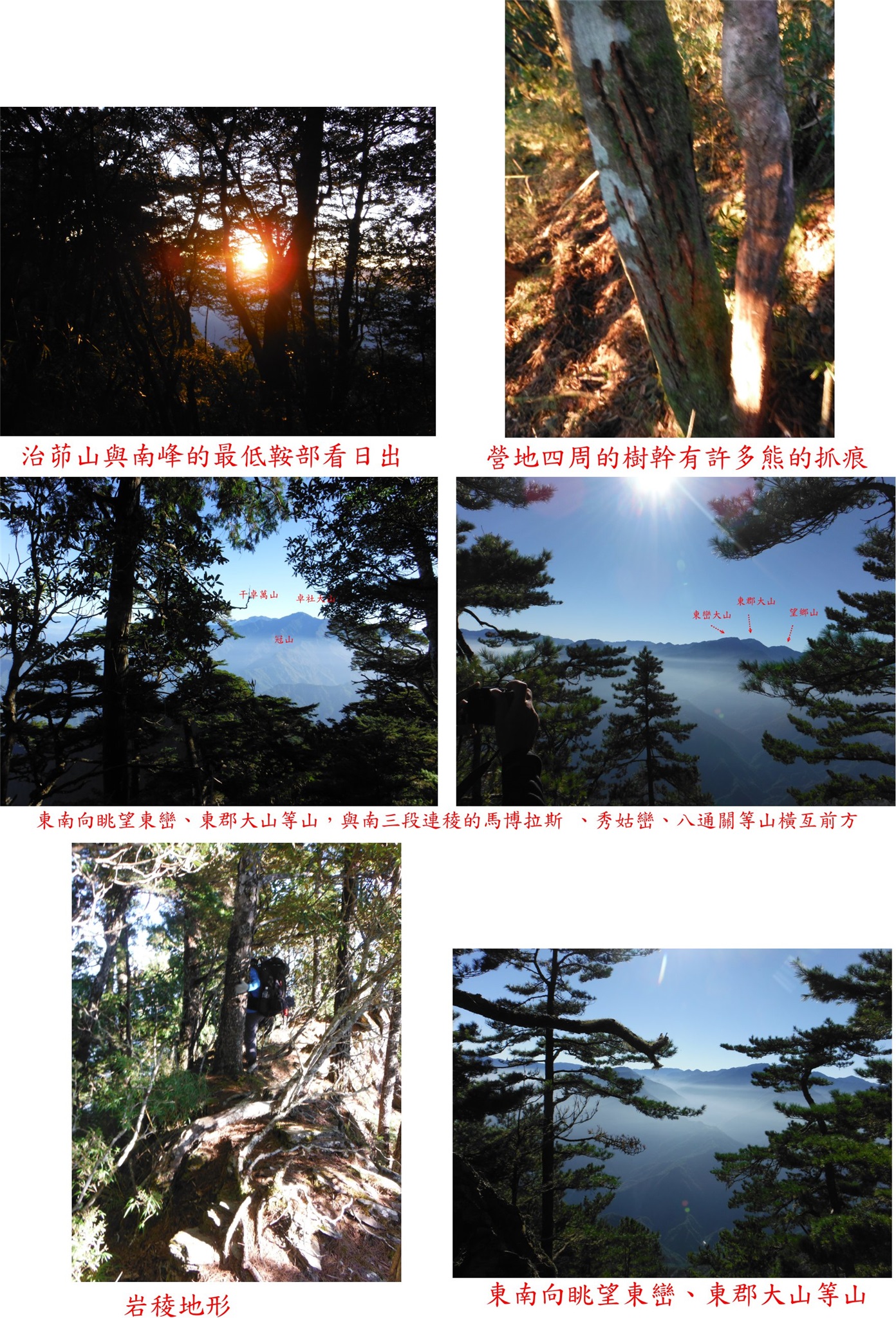 08:19岩稜地形,東南向眺望東巒、東郡大山等山,與南三段連稜的馬博拉斯 、秀姑巒、八通關等山橫亙前方。