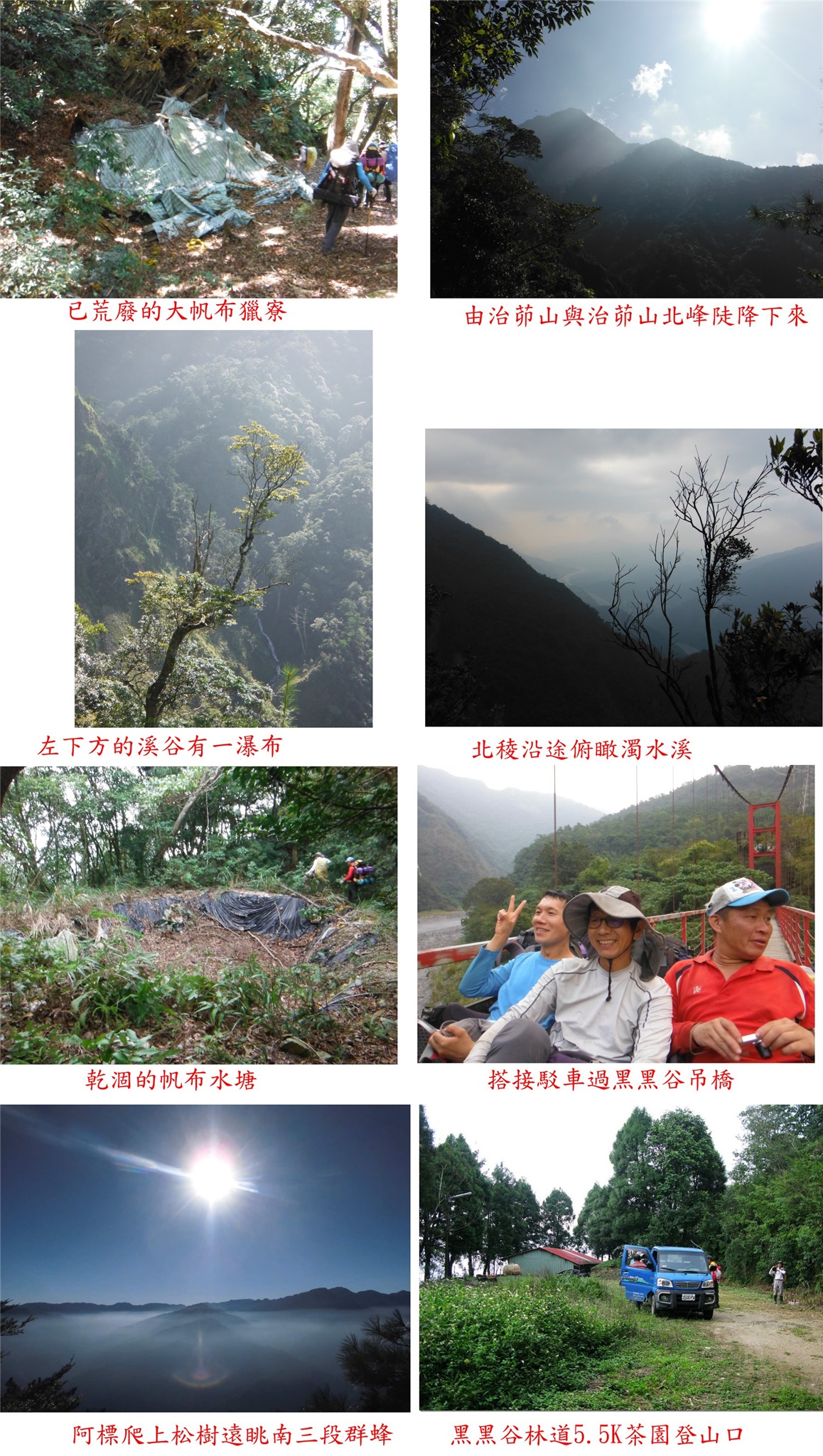 治茆與南峰最低鞍-治茆山-治茆山北峰-黑黑谷山-北治茆山-黑黑谷林道盡頭登山口-搭接駁車回至雙龍田村長家-水里慶功宴