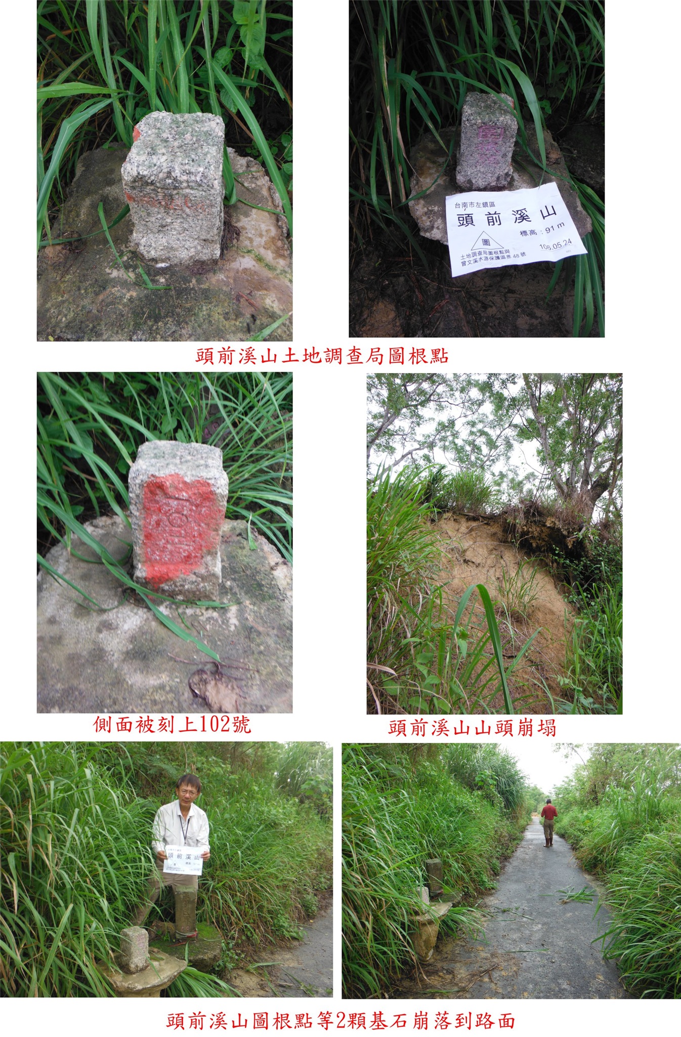4、頭前溪山:位於台南市左鎮區,標高83公尺,土地調查局圖根點與曾文溪水源保護區界48號;座標184758 2551755。