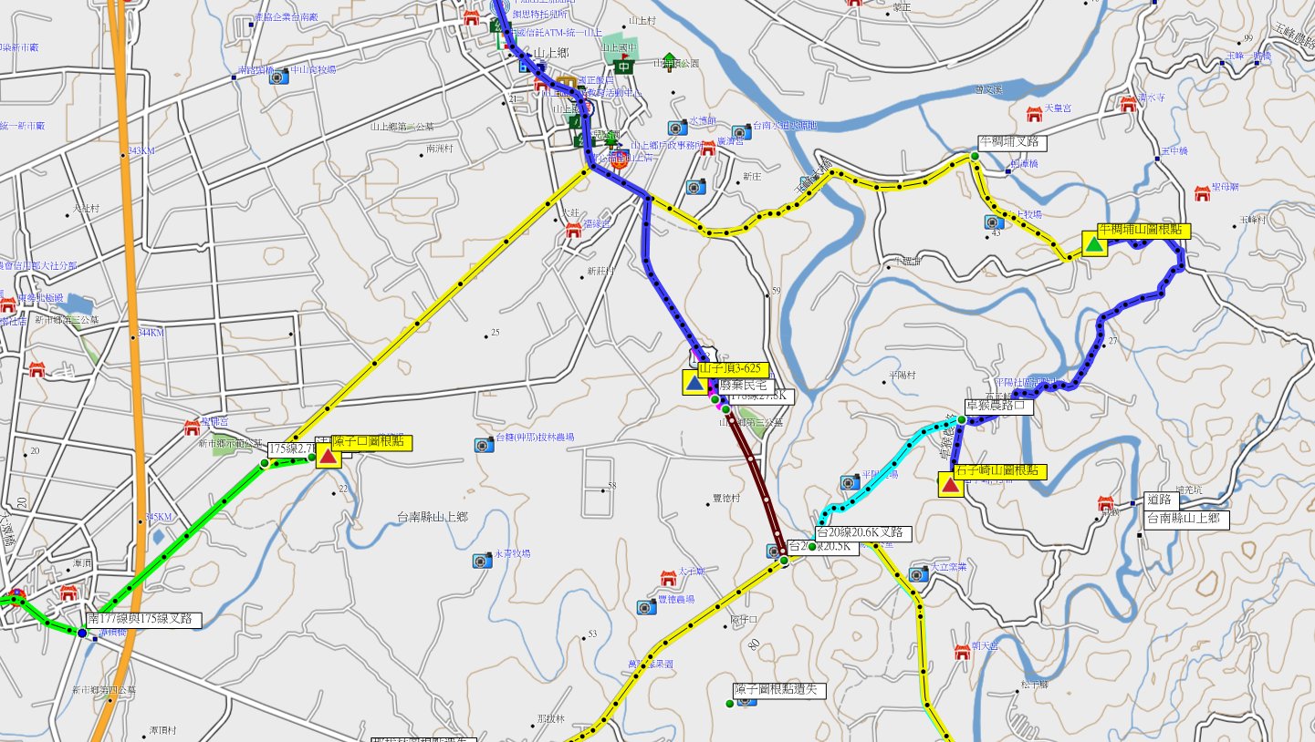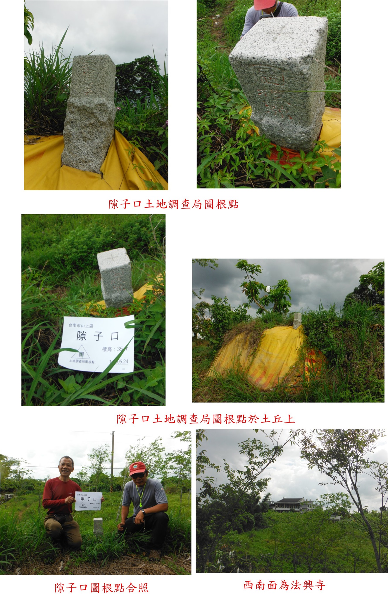 1、隙子口:位於台南市山上區,標高35公尺,土地調查局圖根點;座標181587 2553935。
