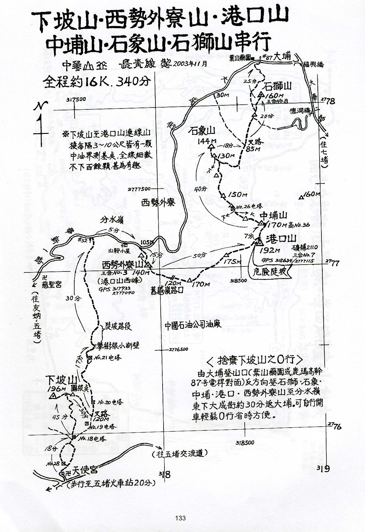 下坡山,西勢外寮山,港口山,中埔山,石象山,石獅山串行
