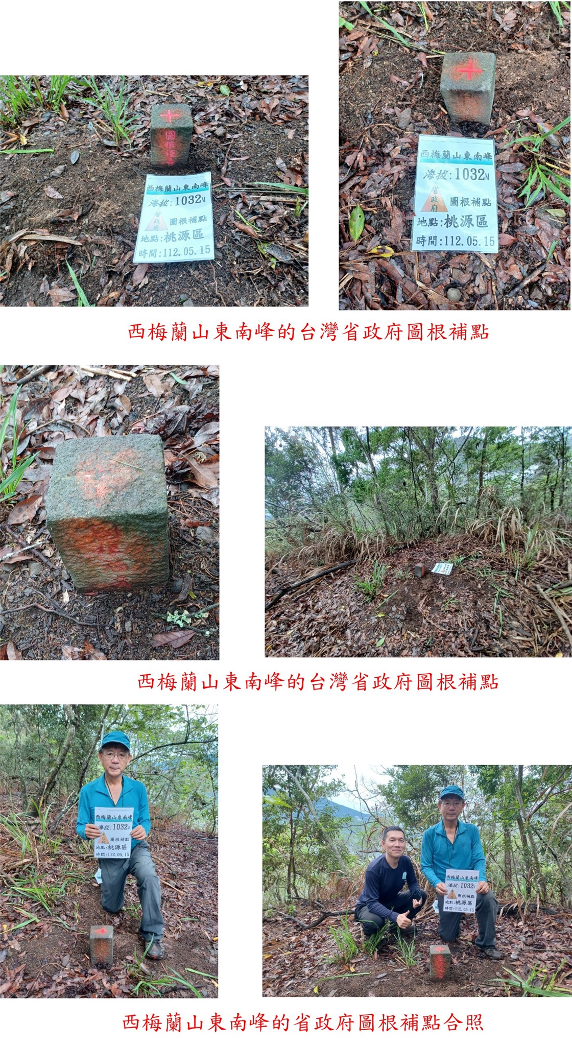 1、西梅蘭山東南峰:位在高雄市桃源區,標高1032公尺,台灣省政府圖根補點,