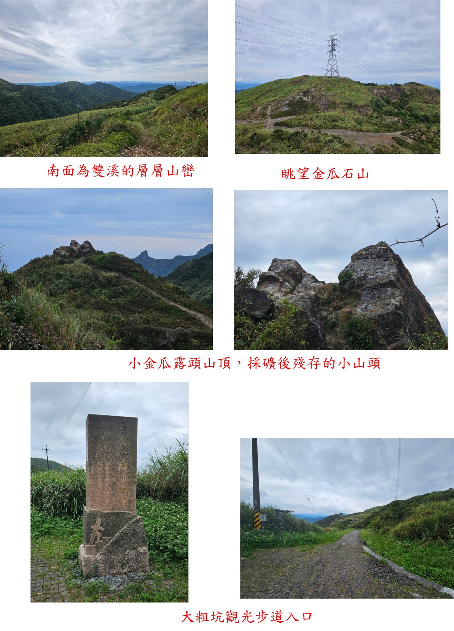 08:17大粗坑山登山口,高545公尺,於水泥路約0.4K處,續行往華視轉播站;取右舊礦區小徑往上,路面沖刷小石塊裸露,東南面眺望牡丹山連稜芒草山頭。