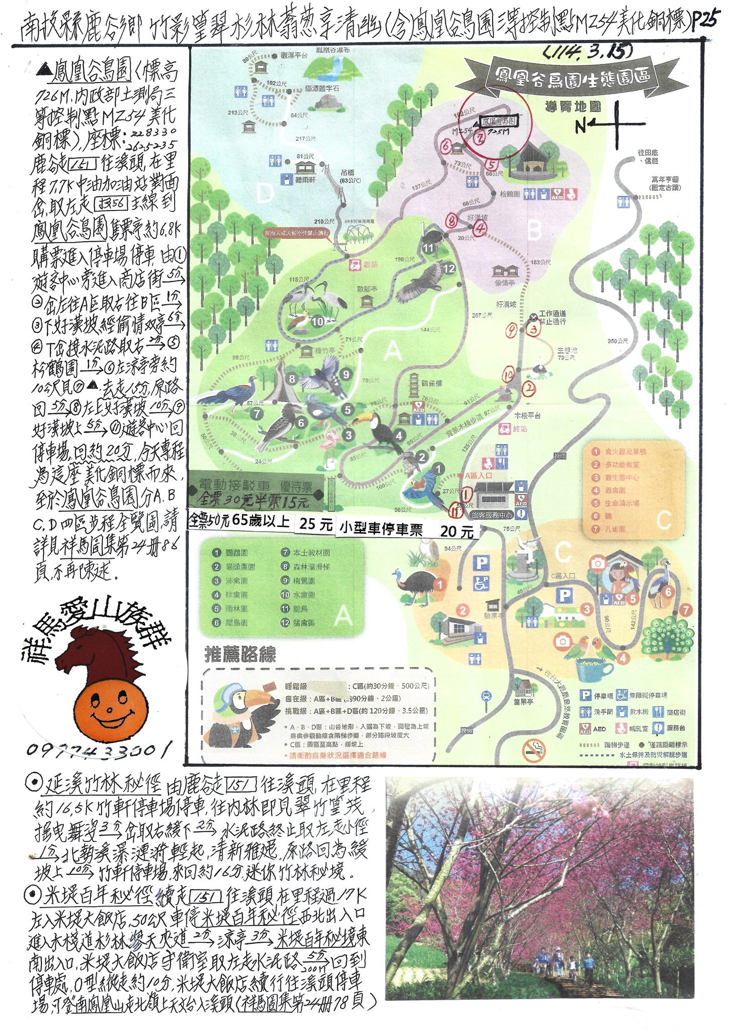 1鳳凰谷鳥園(標高726M,內政部土測局三等控制點MZ54美化銅標),座標:228330.2625235