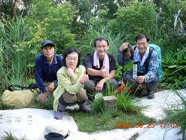 17:02 ▲組合山,H907M,三等三角點,No.4173,基點處芒草叢生,展望不良,照相存證後續行。
