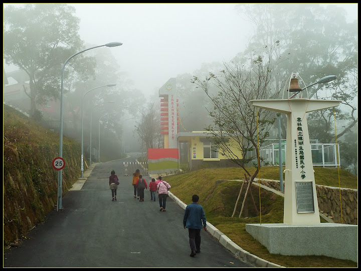 下「後棟仔山」來到學校,已經籠罩雲霧中了!