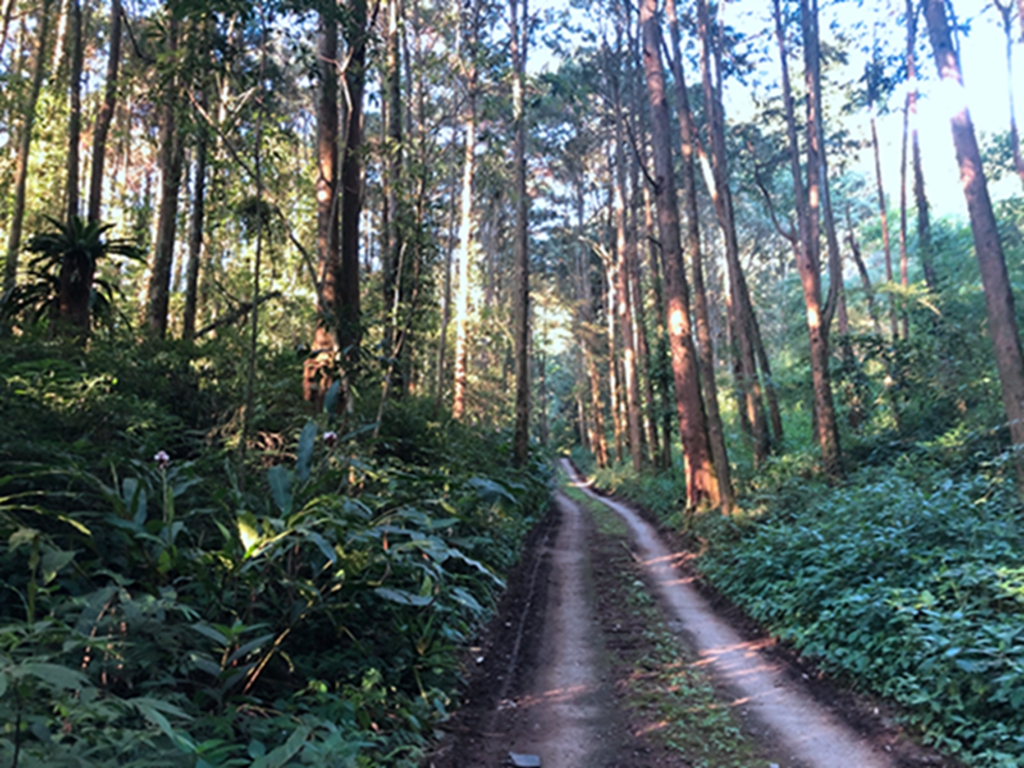09:11接上阿里山林道(020),H2264 m,古道接上最後林道,這段阿里山林道約1.2公里,林道大致保持完整,路又平又寬敞,雨露不沾,可見以前林業興盛,運輸繁忙。