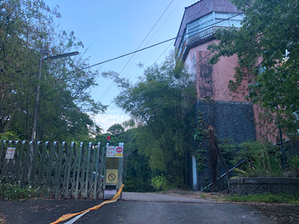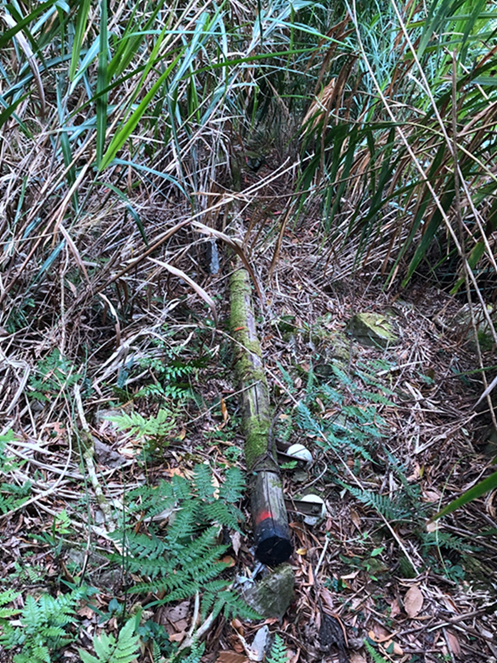 09:28崩塌左繞(022),H2294 m,前面林道崩落需左繞,右側有一個廢帆布工寮,左繞進去有溪溝活水源(023),水質清澈。