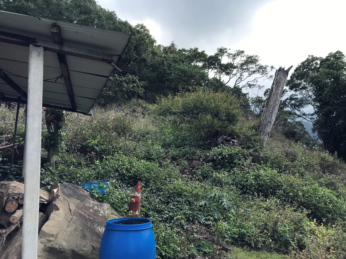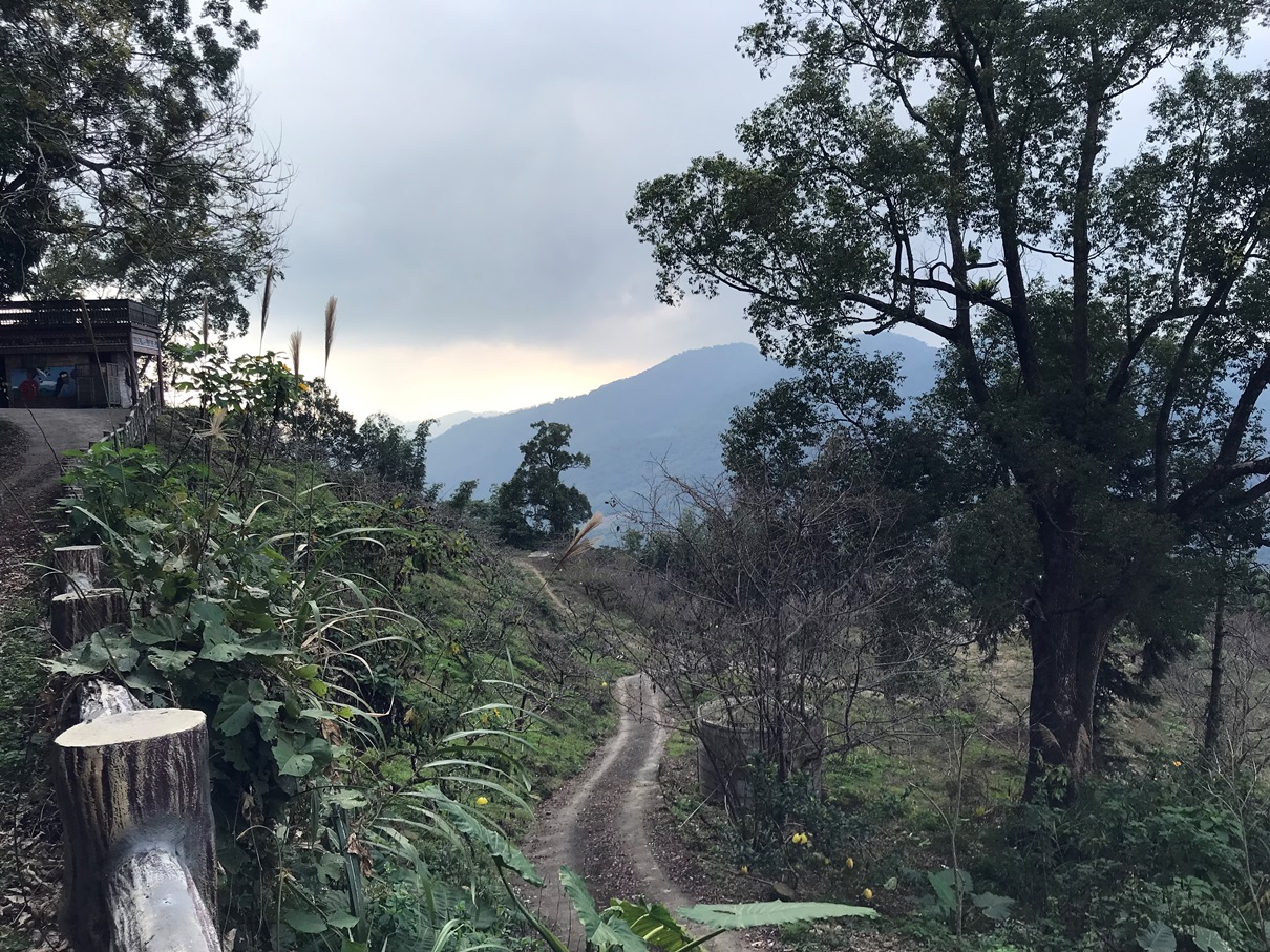 右轉繼續沿土石路之字形上坡,走約180公尺到稜線開墾區工寮處停車,此處視野相當好,有270度的展望。