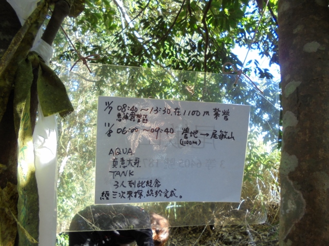 抵達1909峰後沒多久開始出現鹿港陽光隊的路條,大喜,以為三角點就在附近,找尋許久無所穫