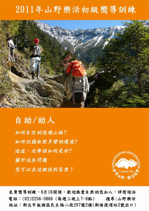 台灣山野樂活協會2011期初級嚮導訓練開始報名囉