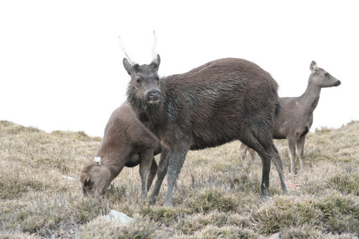 雙角讓人感覺雄壯威武不可侵犯的公鹿,還有一隻母鹿肚子廷大的研判牠要當媽媽