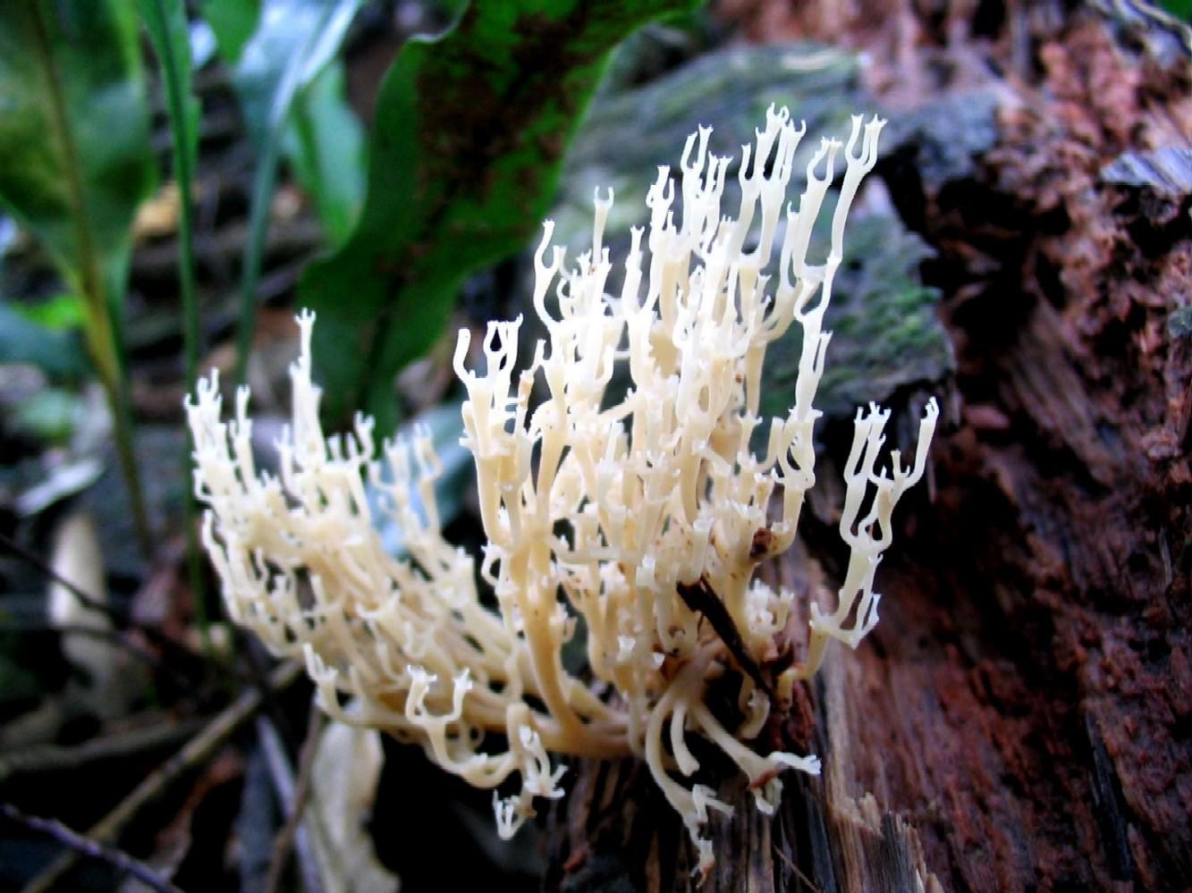 第8應該是「杯珊瑚菌」,淡黃色的菇體呈散形分支狀,分支頂端處還有著狀似王冠的裝飾,因此又名「冠珊瑚菌」,可食。
