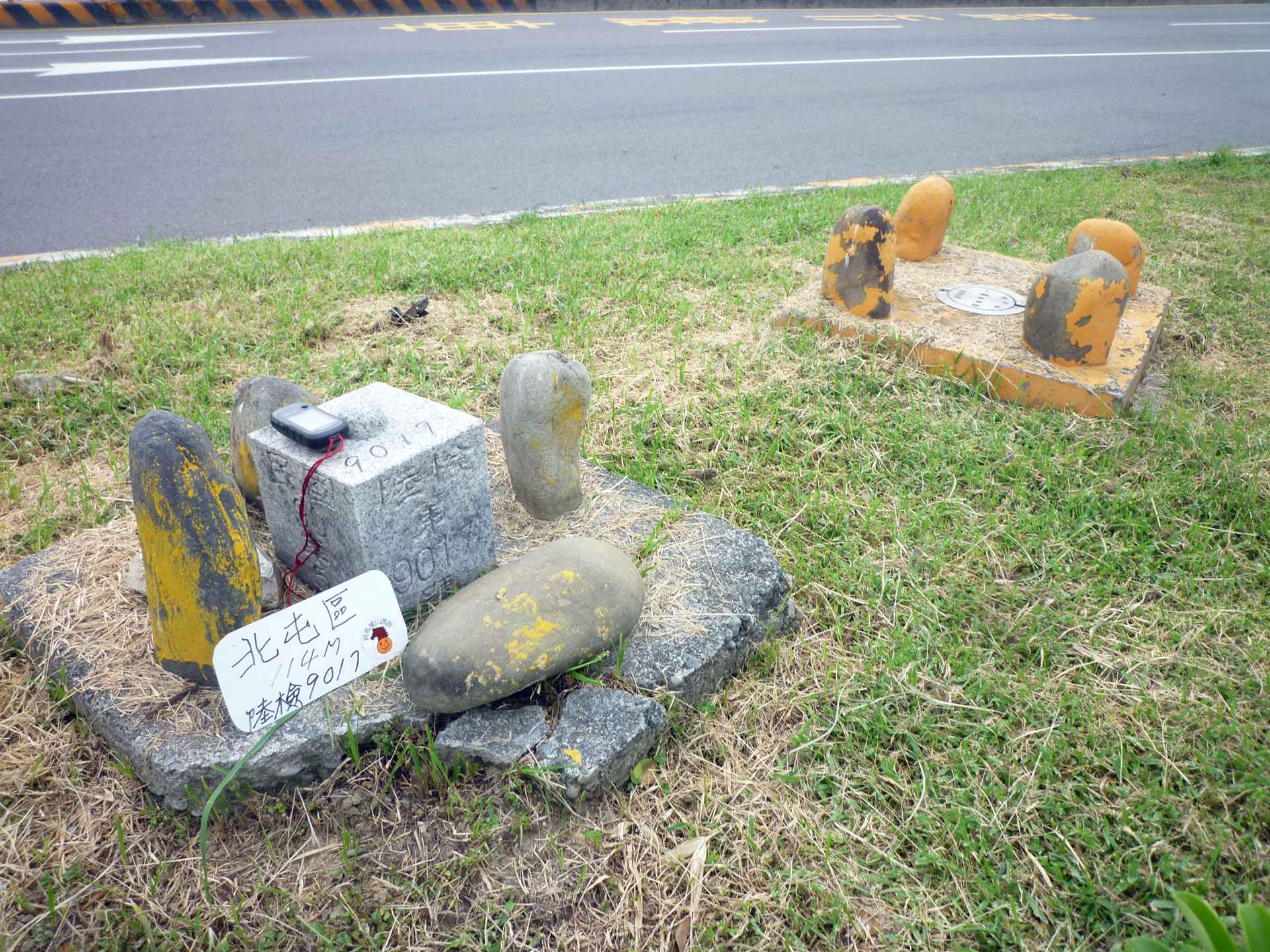 1北屯區(標高114M,陸檢9017一等水準點),座標:217919.2673266,在北屯路與進化路交界分隔島上(新發現)