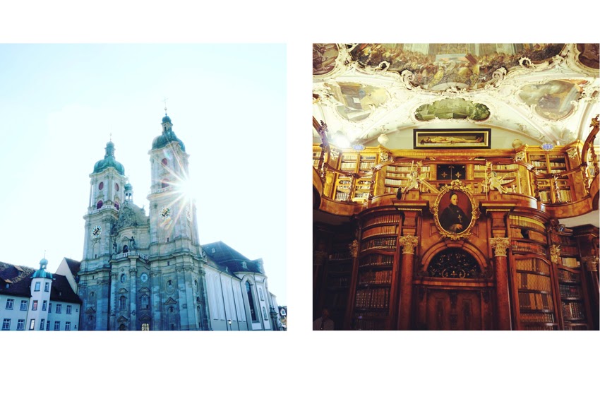 瑞士東部第七大都市的聖加倫St.Gallen,市區裡有個著名的舊城,舊城裡禁止汽車行駛,市街上還保有色彩繽紛雕工細緻的凸肚廚窗,並擁有名列世界遺產的巴洛克式大教堂Cathedral跟有著全瑞士最美麗洛可可式的修道院圖書館Abbey Library,圖書館擁有14萬豐富藏書,還有千年的羊皮手抄本,與快要失傳的愛爾蘭人所始用的凱特語書籍,Abbey Library真的非常美麗,看到的第一眼驚訝到無法用言語形容,很像冰與火之歌培養學士的圖書館,裡面各種類型書籍都有,還有顆當時手工自製的天文球體、千年木乃伊公主與棺木,簡直讓人嘆為觀止,特別感謝Guide的詳細說明介紹,很豐富的一趟舊城文化與自然健行之旅。