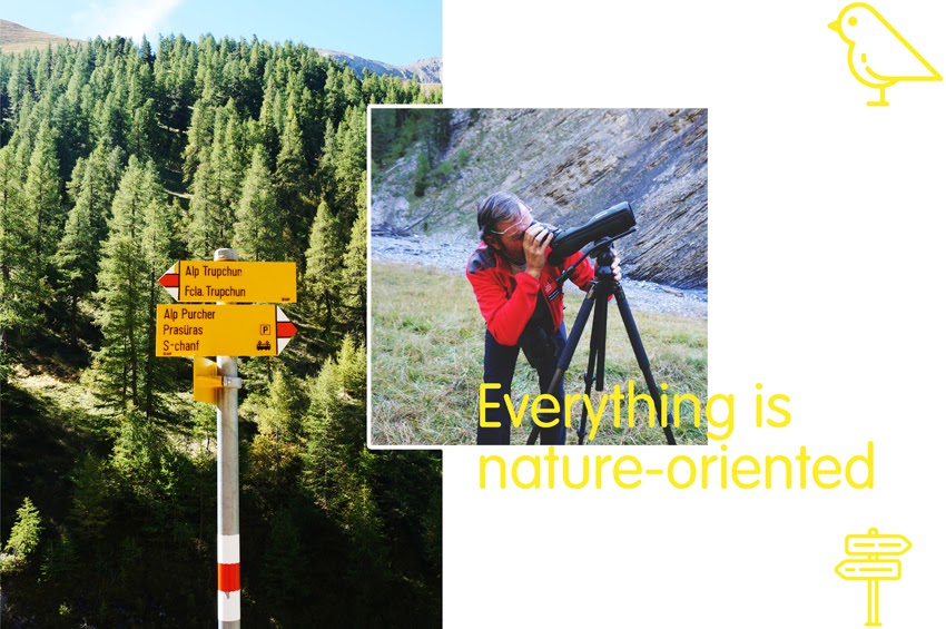 國家公園導覽者-Martin有著非常專業與像老鷹般的雙眼,沿途熱情解說,一路扛著望遠鏡敏銳快速的找尋,藏在山林裡遙遠像螞蟻般小的動物,讓大家能透過往遠鏡仔細觀賞他們的日常生活,沿途遇見不少瑞士人來此觀察野生動物,小學生們還有課程是把國家公園的各個路徑走遍,在成長中就習慣與大自然相處為伍,瞭解自己家鄉的種種。