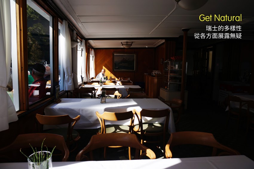 航行時間不算短,沿途可以看見瑞士不同洲別的在地文化,船上的食物也很好吃。