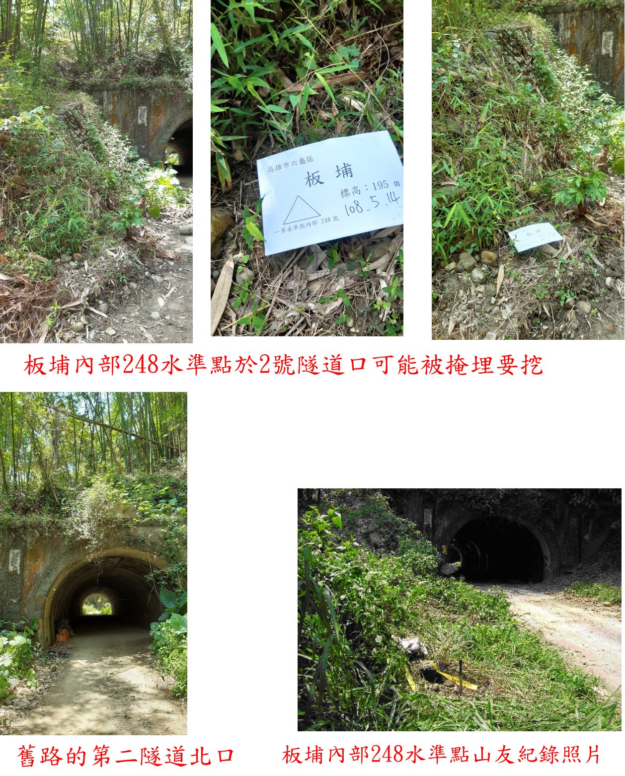 5、板埔:位於高雄市六龜區,標高195公尺,一等水準點內部 248號基石掩埋;座標212626 2537554。