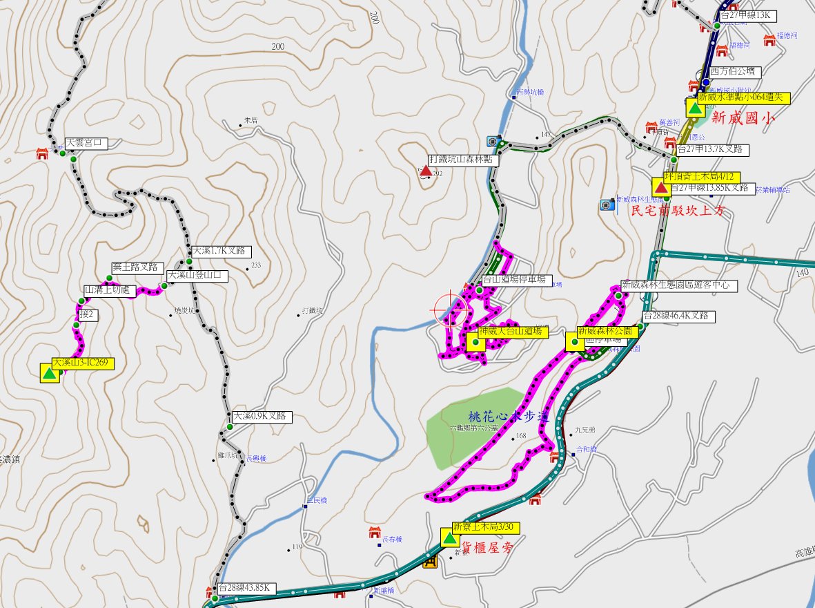 ◎再來續走台28線(旗甲公路)往東前行1.5K(46.4K處),左轉走約0.4K至新威森林生態園區停車;此園區屬茂林國家風景區,長