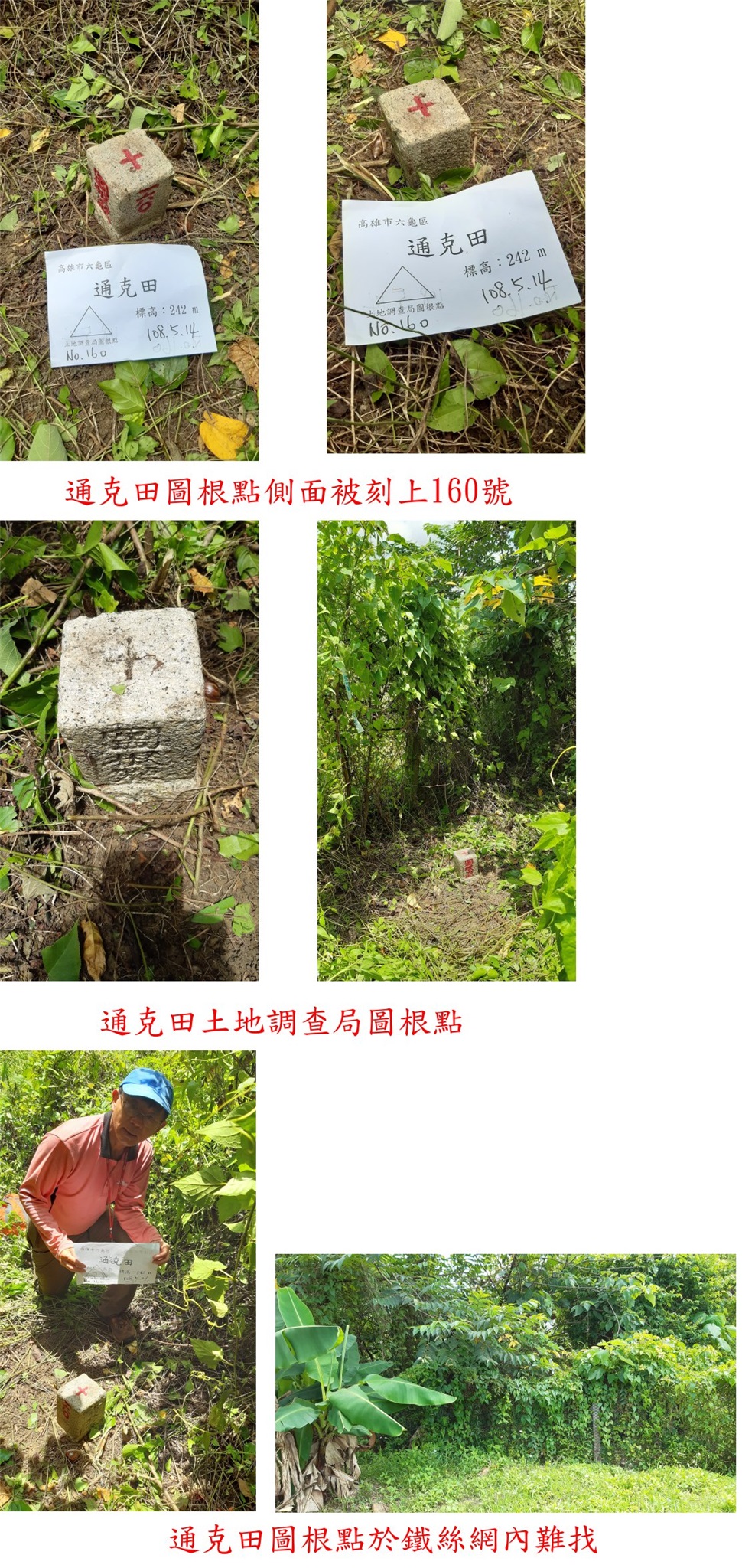 7、通克田:位於高雄市六龜區,標高242公尺,土地調查局圖根點;座標211783 2543578。