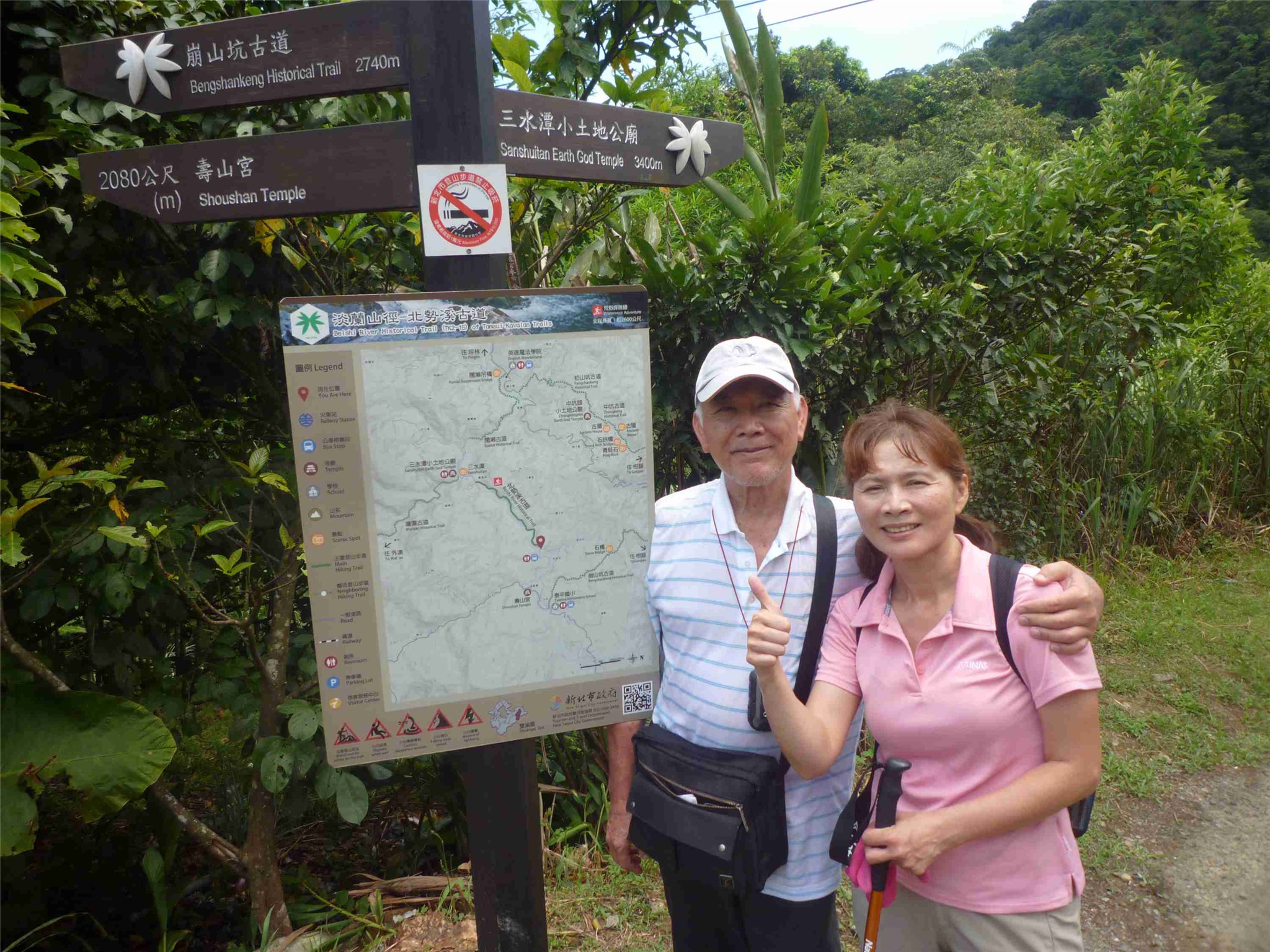 14北勢溪古道另一出入口,接水泥路T岔,右往壽山宮2080公尺,崩山坑古道2740公尺