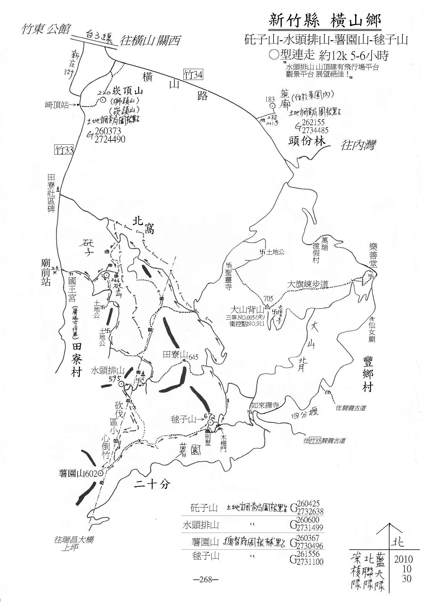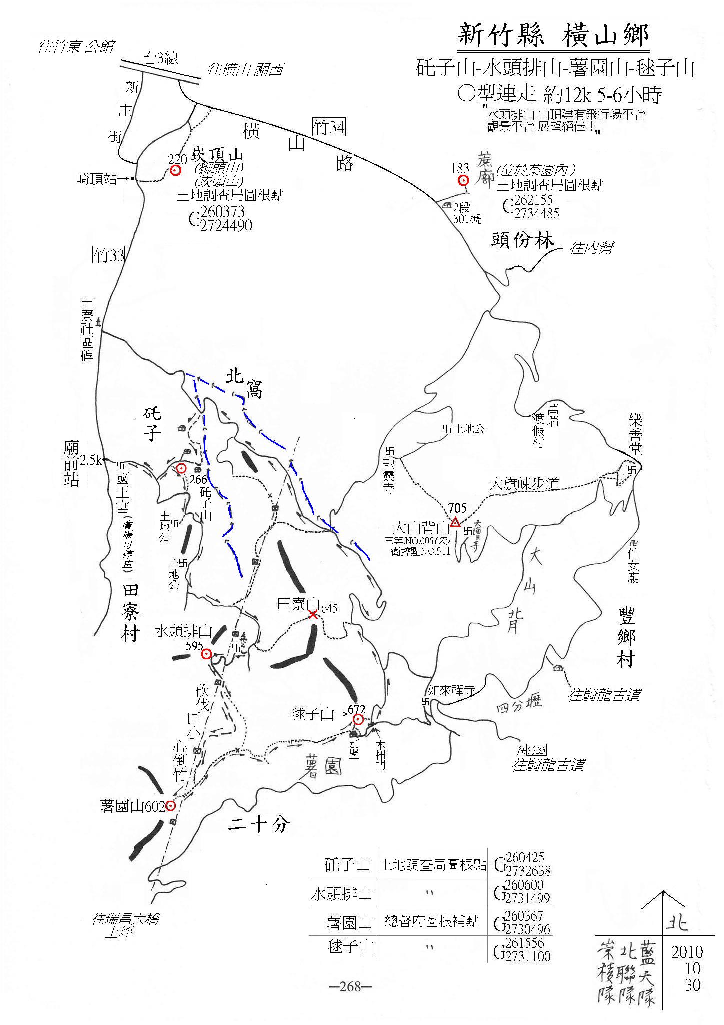 (十268) 新竹縣橫山鄉 矺子山~水頭排山~薯園山~毬子山○型連走2010年