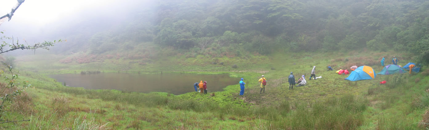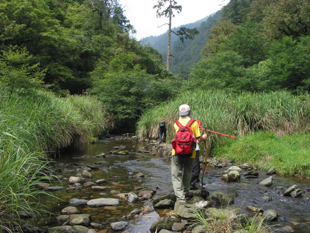 • 啊哈!就知道你們會吃排頭,畢竟一支廿幾人的隊伍一天要走三十公里外加一千四百公尺的落差可不是一般人可走的,除了阿ㄆ一ㄝˇ'風神阿丁這種怪腳.日前野外理事長來幫忙張羅新店開張的事還提及馬博阿ㄆ一ㄝˇ'用四天的時間追上他們六天的行程一事,我們兩個人的共同心聲--後生實在可"怕"... 雖然我們走的是兩天的行程,但一樣很累,一樣人仰馬翻,最後還摸了十分鐘的黑,但回想起來我可寧願走三天或四天的行程,免得辜負了山林美景.此次相遇很抱歉無法和各位好好認識一下,希望改天好好敍一下. 附帶提一下,松羅湖我們到時己是滿水狀態,可見雨勢多大.