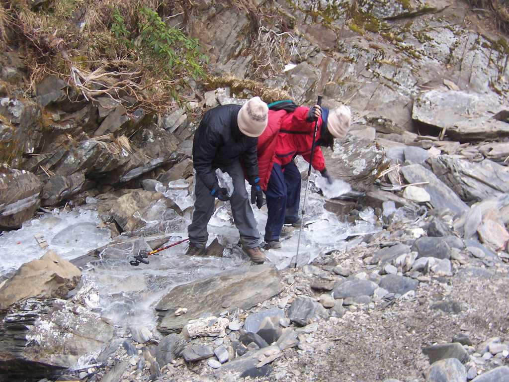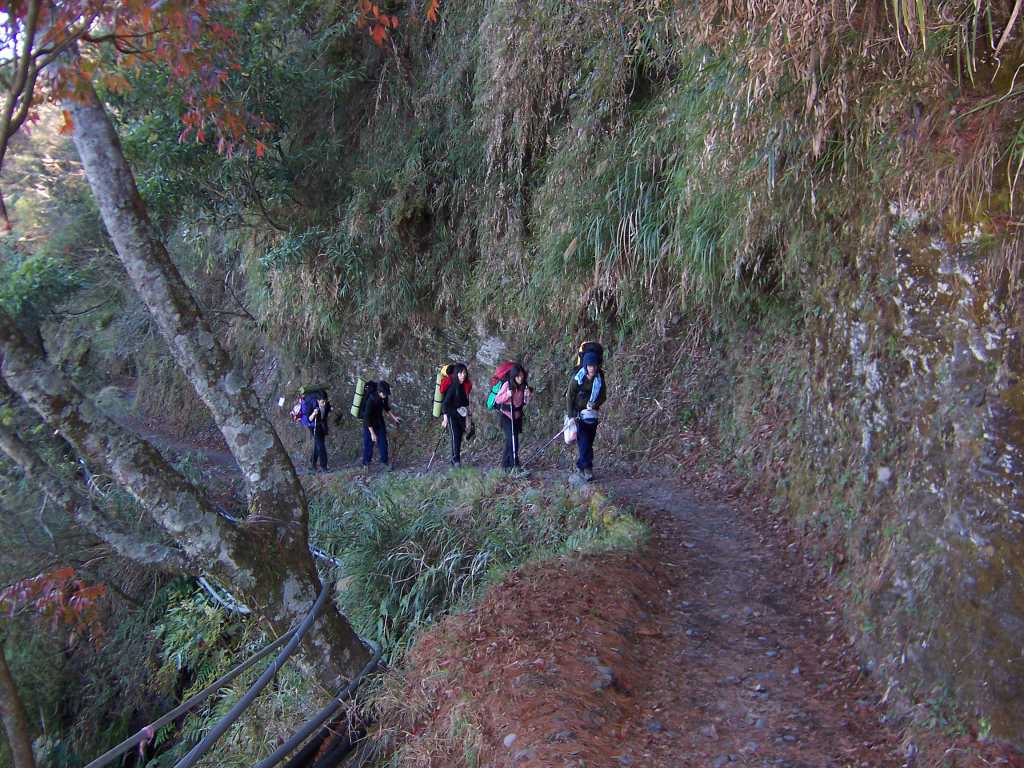 • 其實我用的釘鞋若上高山雪地路滑, 只要不太深, 應急用或許也可以. 再帶個冰斧應可對付大部份不太糟的路況. 若只是溶雪地, 那跟一般天雨路滑樹根路一般, 多了個冷字還有稀薄的空氣強風. 裝備齊全, 也是可以享受登高的樂趣.